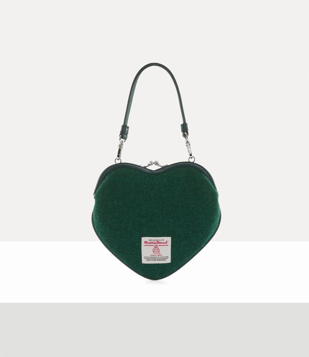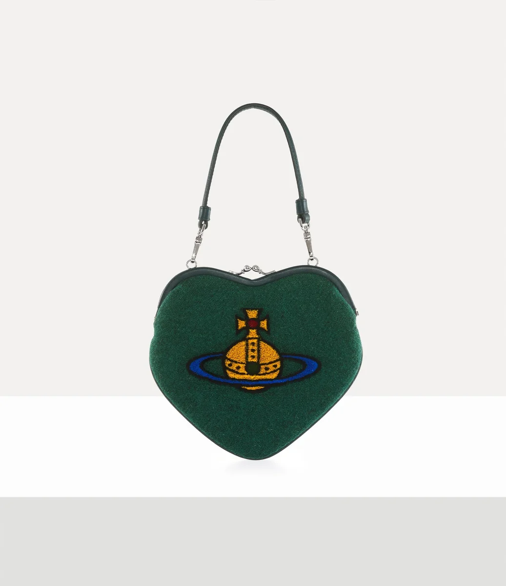 Die Vivienne Westwood Belle Heart Frame Handtasche aus Wolle zeichnet sich durch ihre klassische herzförmige Silhouette aus und ist mit unserem Orb-Motiv in einer neu interpretierten Tufting-Ausführung versehen.