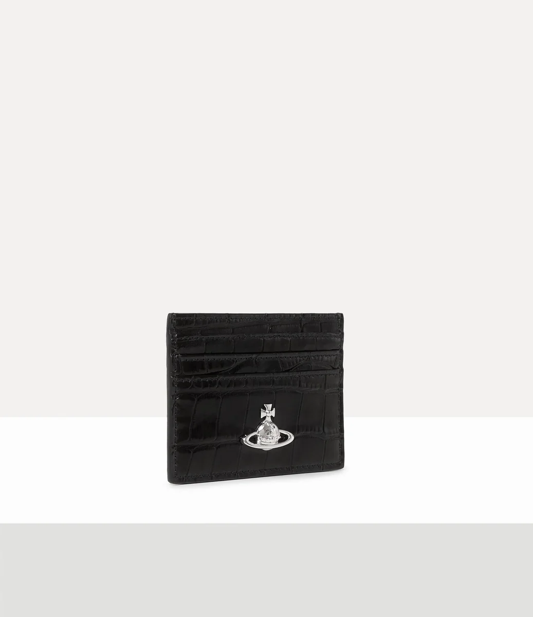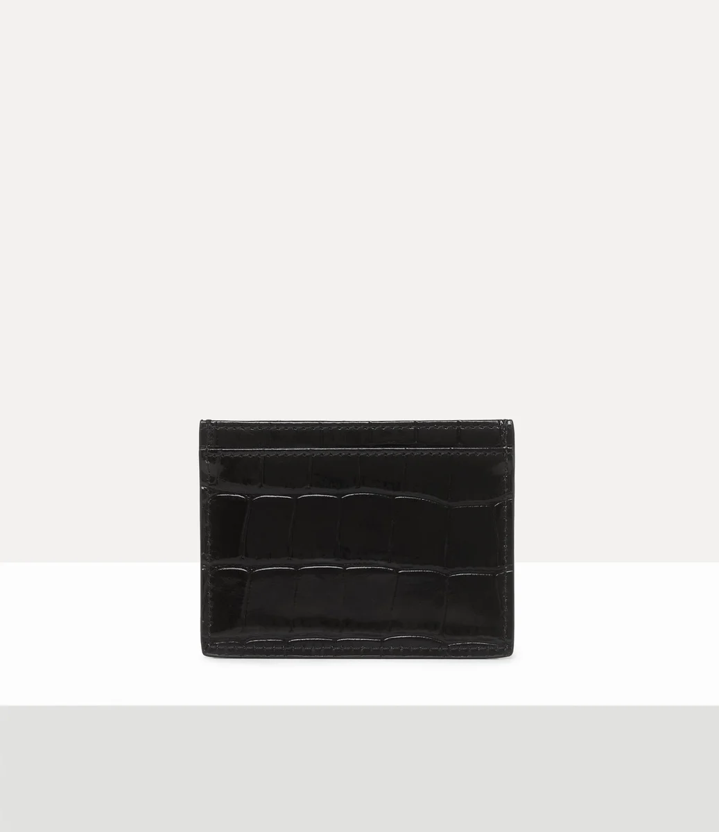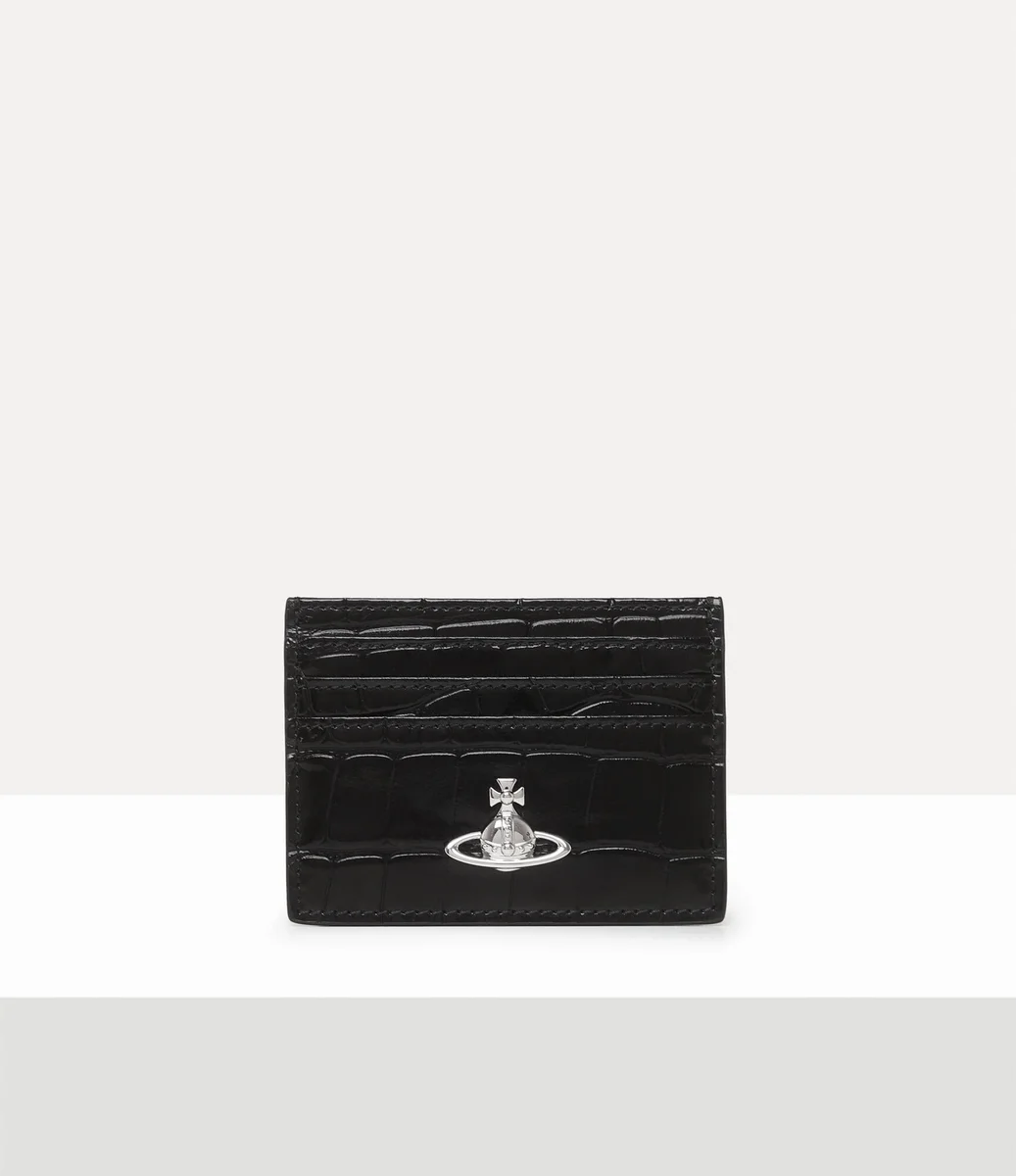 Unser charakteristischer flacher Kartenhalter ist aus glänzendem Leder mit einer Prägung in Krokodillederoptik gefertigt. Das schlanke Profil ist auf der Vorderseite mit einem silberfarbenen Kugelmotiv verziert, das die Philosophie des Hauses widerspiegelt, die Vergangenheit mit der Zukunft zu verbinden.