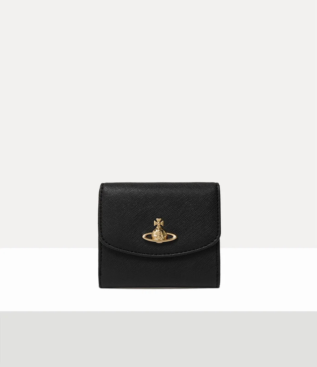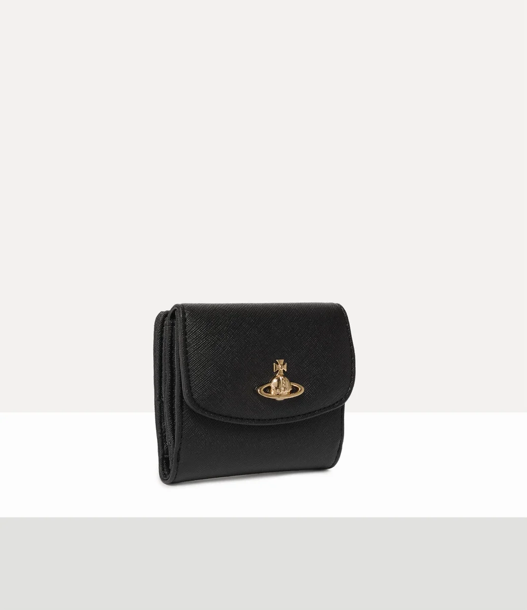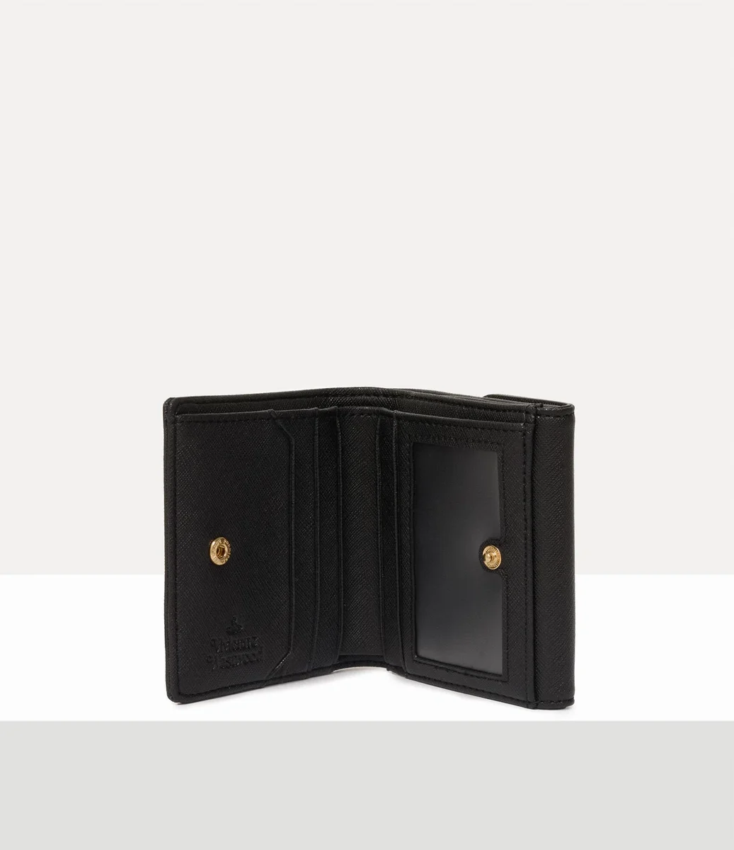 Unsere kleine Geldbörse hat ein elegantes Design mit zwei Fächern, ist aus PU-Leder gefertigt und zeichnet sich durch ihre Saffiano-Struktur mit Kreuzmuster aus. Das ikonische Orb-Logo des Hauses aus goldfarbenem Metall ziert die vordere Klappe über einem polierten Druckknopfverschluss, während ein dezentes geprägtes Logo das Innenfutter bereichert.