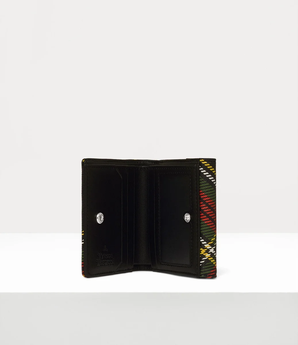 Unsere kleine Geldbörse wurde mit dem Tartan-Motiv „Chelsea” dieser Saison neu interpretiert und mit gedeckten Farbtönen und klassischen silberfarbenen Metallbeschlägen versehen. Das Stück ist mit dem charakteristischen „Line Orb”-Motiv des Hauses verziert, das Viviennes Vision von der Weiterführung der Tradition in die Zukunft widerspiegelt.