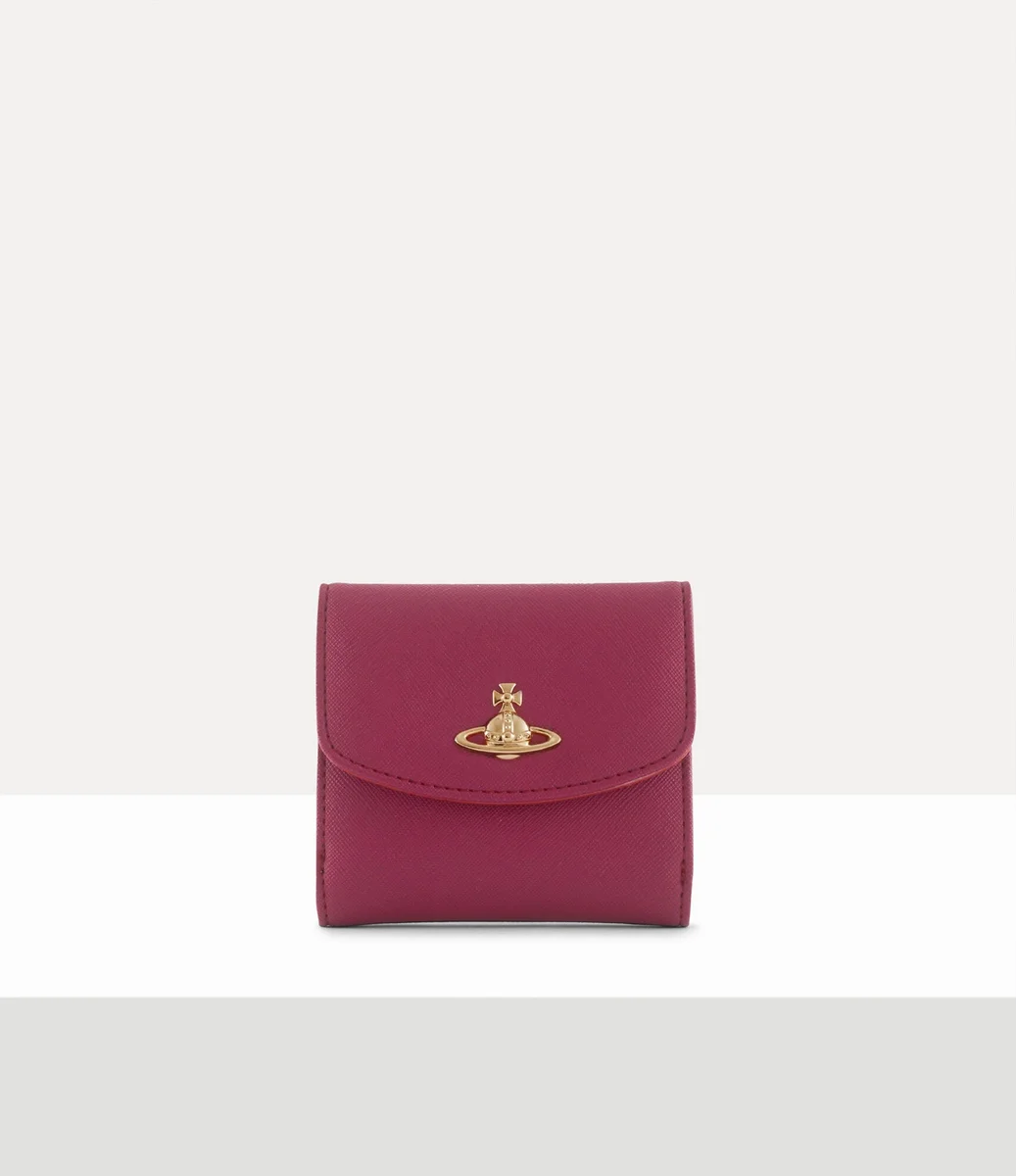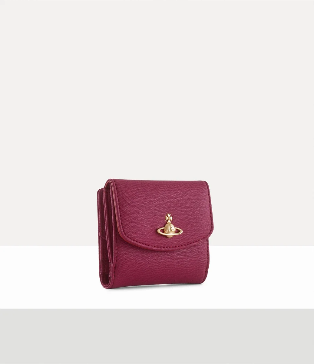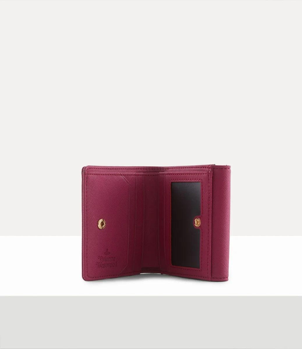 Unsere kleine Geldbörse zeichnet sich durch ein elegantes, zweifach gefaltetes Design aus, ist aus PU-Leder gefertigt und besticht durch ihre Saffiano-Struktur mit Kreuzmuster. Das ikonische Orb-Logo des Hauses aus goldfarbenem Metall ziert die vordere Klappe über einem polierten Druckknopfverschluss, während dezente Prägungen das Innenfutter bereichern.