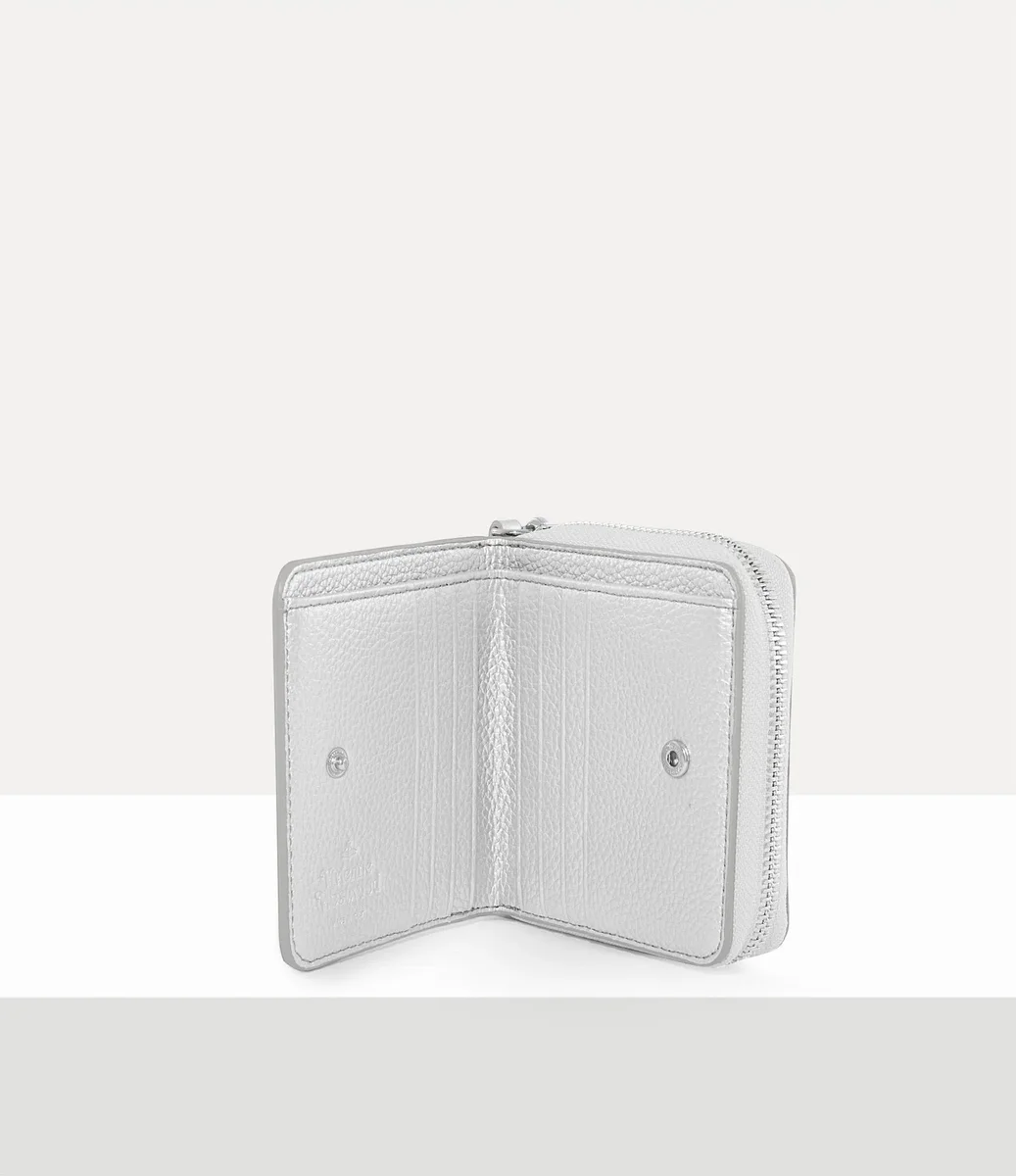 Unsere mittelgroße Geldbörse mit Reißverschluss ist aus PU-Leder mit Narbung gefertigt und verfügt über ein übersichtliches Innenleben mit integrierten Kartenfächern und einem speziellen Fach für Quittungen und Notizen. Das Modell hat eine abgerundete Silhouette und ist mit dem Metallmotiv „Line Orb” verziert, das an Viviennes Vision erinnert, Tradition in die Zukunft zu tragen.