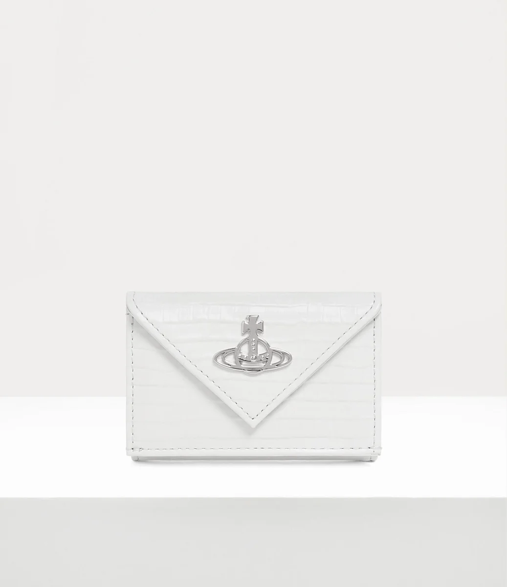Unsere Envelope Billfold wurde in diesem Saison in Mini-Krokodilleder mit Prägung neu interpretiert. Mit dem charakteristischen „Line Orb”-Motiv des Hauses auf dem Druckknopfverschluss verkörpert dieses Stück Viviennes Vision, Tradition in die Zukunft zu tragen.
