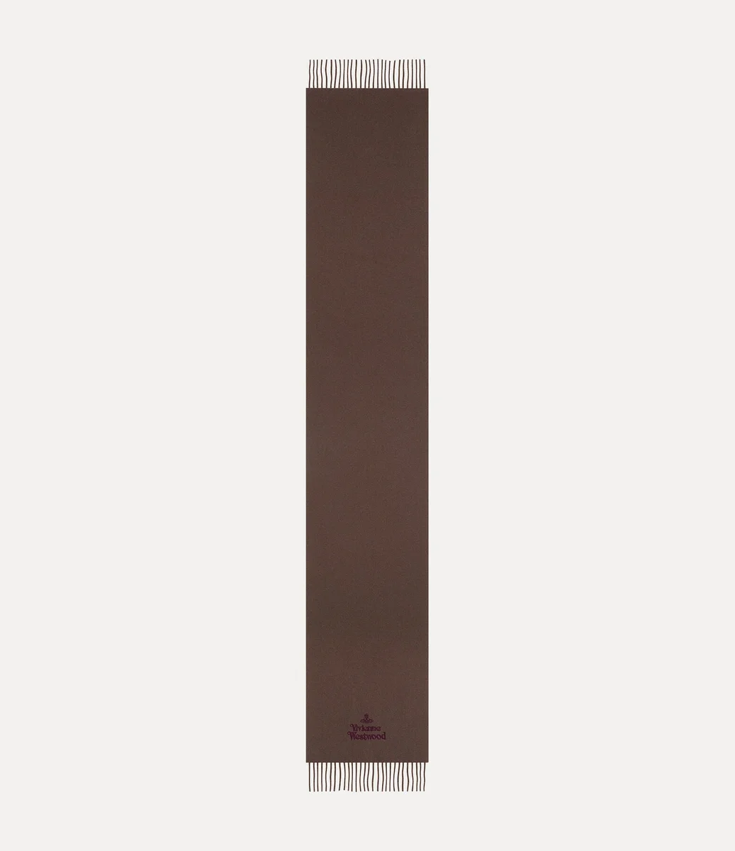 Der bestickte Schal von Vivienne Westwood hat eine weiche Wollsilhouette und ist am unteren Rand mit dem Schriftzugmotiv des Hauses versehen.