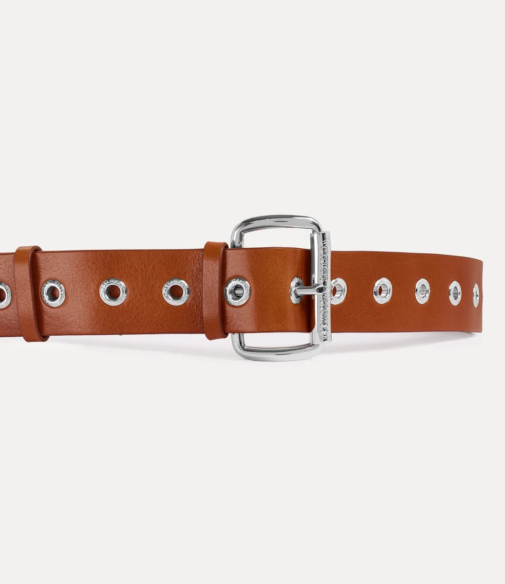 Unser Bondage-Gürtel wurde in dieser Saison aus glänzendem, pflanzlich gegerbtem Leder neu interpretiert und mit den charakteristischen silberfarbenen Metallbeschlägen des Hauses akzentuiert. Das Design zeichnet sich durch auffällige, von Bondage inspirierte Ringe aus, die von der Vivienne Westwood Frühjahr/Sommer-Kollektion 1995 „Erotic Zones” inspiriert sind.
