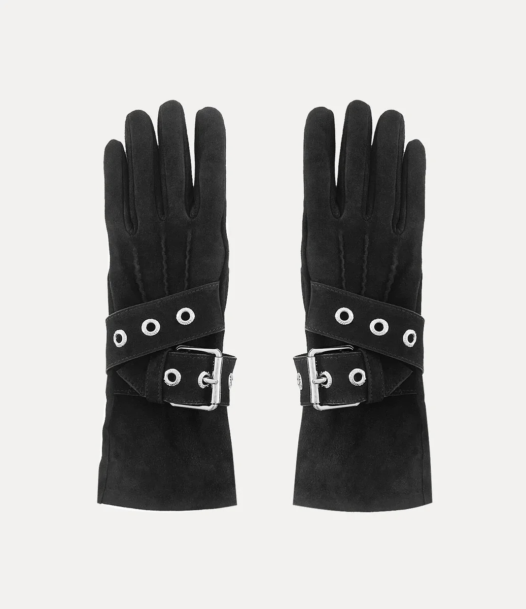 Unsere Handschuhe mit Gürtelschnalle sind aus weichem Wildleder gefertigt und verfügen über eine verlängerte Manschette, die über das Handgelenk hinausreicht. Inspiriert vom charakteristischen Alex-Gürtel des Hauses, ist das Design mit einem asymmetrischen Riemen verziert, der diagonal über jeden Handschuh verläuft und mit gravierten silberfarbenen Metallbeschlägen versehen ist.