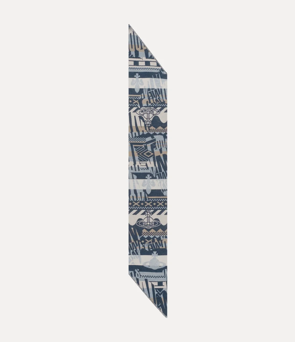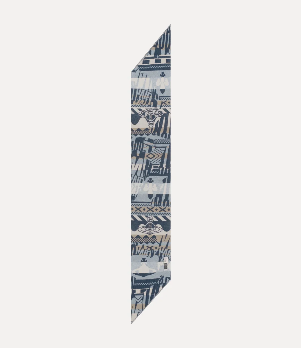Der Two Point Scarf wurde mit dem charakteristischen „Two Point”-Designsystem des Hauses versehen, wodurch eine unverwechselbare Silhouette mit asymmetrischen Kanten entsteht. Er ist mit dem Broken Fair Isle-Jacquard dieser Saison versehen, der ikonische Motive des Hauses und subtil verblasste Bereiche enthält, aus denen der klassische „Vivienne Westwood”-Schriftzug hervorgeht.