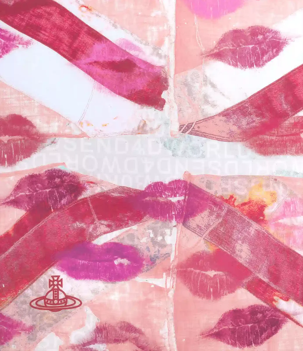 Unser Union Jack Kiss Square zeigt das „Kisses”-Kunstwerk dieser Saison, das von der Verpackung des ikonischen Boudoir-Parfüms des Hauses inspiriert ist. Das quadratische Design zeigt den Union Jack, der erstmals auf dem Brautkleid der Anglophilia-Kollektion Herbst/Winter 2002 zu sehen war.