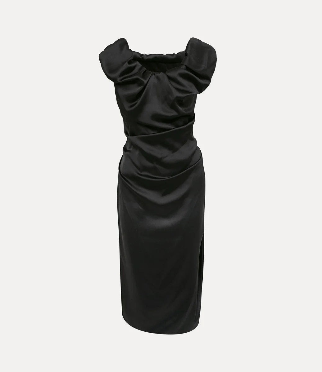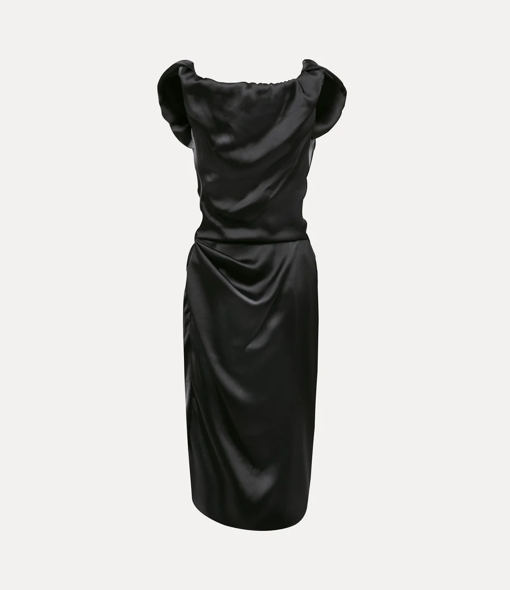 Unser zeitloses Ginnie Amber Kleid wurde in dieser Saison mit einem luxuriösen Satin-Finish neu interpretiert. Das Kleidungsstück mit gerafftem, asymmetrischem Ausschnitt fällt weich über das Oberteil und die Hüften und endet in einer raffinierten mittellangen Silhouette.