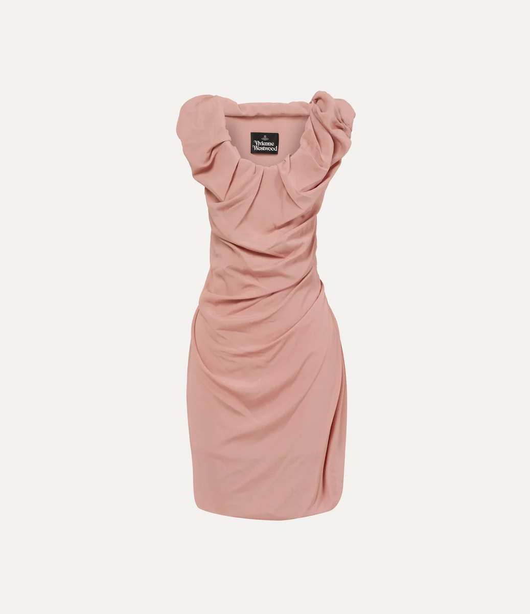 Das Minikleid Ginnie Amber von Vivienne Westwood wurde in dieser Saison neu interpretiert und besteht aus einer weichen Seidenmischung mit einer gekräuselten Textur und einem matten Finish.