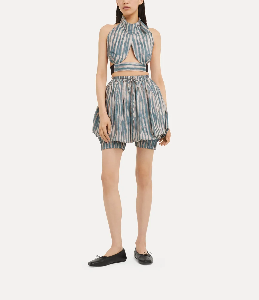 Das ärmellose Boob Top ist aus weicher Baumwolle gefertigt und hat eine figurbetonte Passform, die sich sanft an die Brust anschmiegt. Der hohe Ausschnitt und das kurze Design sorgen für eine schmeichelhafte Silhouette, während die handgemalten Pinselstriche und die überfärbte Oberfläche dem Kleidungsstück einen einzigartigen, strukturierten Look verleihen.