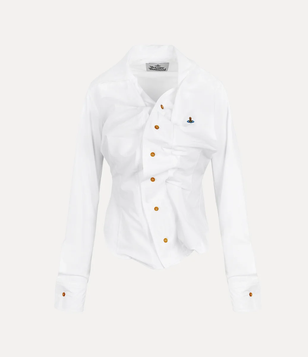 Unser Drunken-Hemd greift Elemente des „Alcoholic”-Schnittsystems auf, das erstmals in der Herbst/Winter-Kollektion 1983/84 „Witches” vorgestellt wurde. Dieses klassische Hemd verfügt über eine versetzte Knopfleiste mit asymmetrischem Saum und Knopfverschluss.