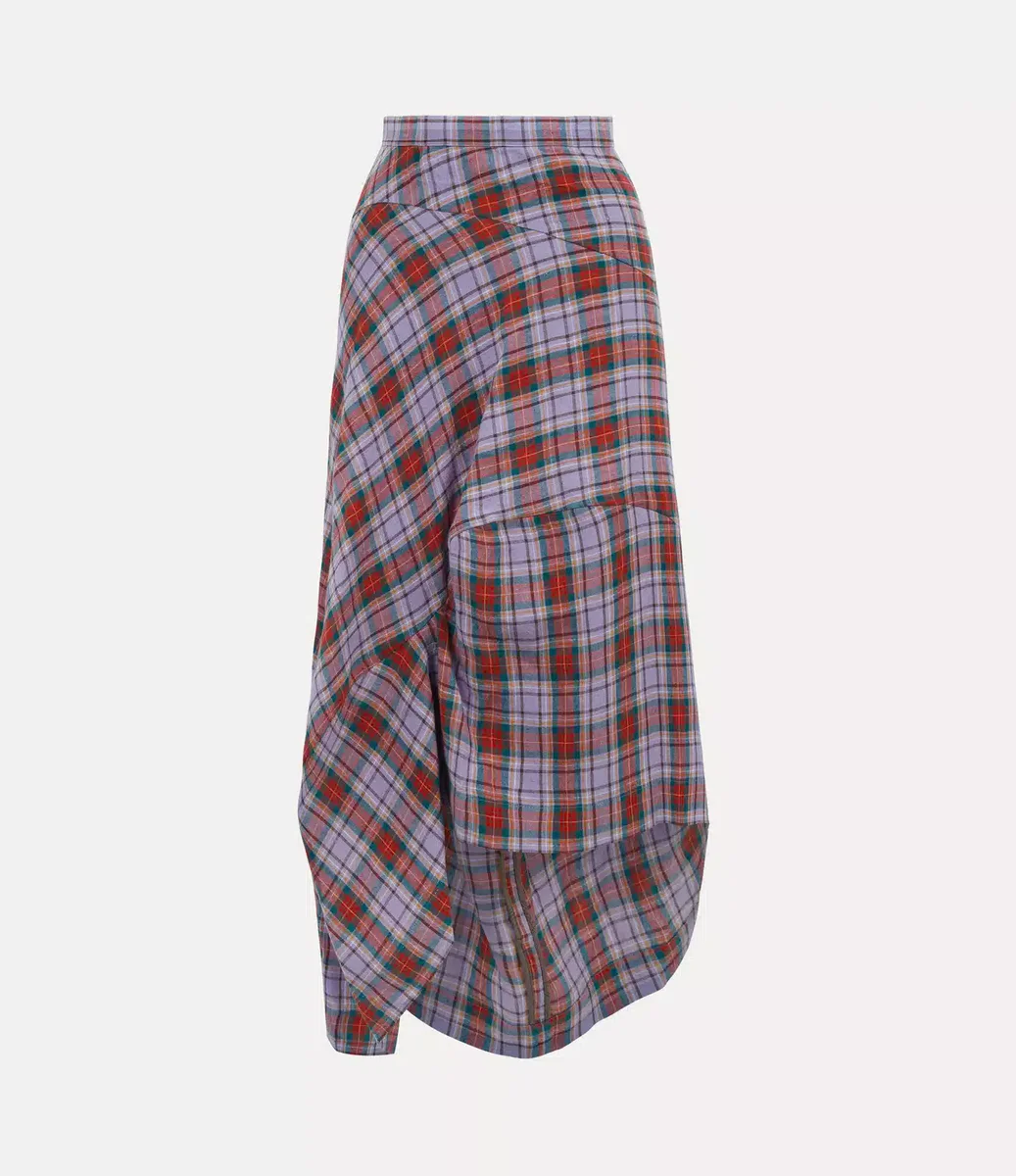 In Anlehnung an die charakteristische Gold Label-Kollektion „Wild Beauty” des Hauses aus dem Herbst/Winter 2001 ist unser Aeroplane-Rock mit einem hohen Bund gestaltet, der in einen weichen, asymmetrischen Saum mit voluminösen Falten übergeht. Das Kleidungsstück ist mit dem auffälligen „Louth Tartan”-Motiv verziert und verfügt über einen verdeckten Verschluss und diagonale Einsätze, die die drapierte Silhouette betonen.p>