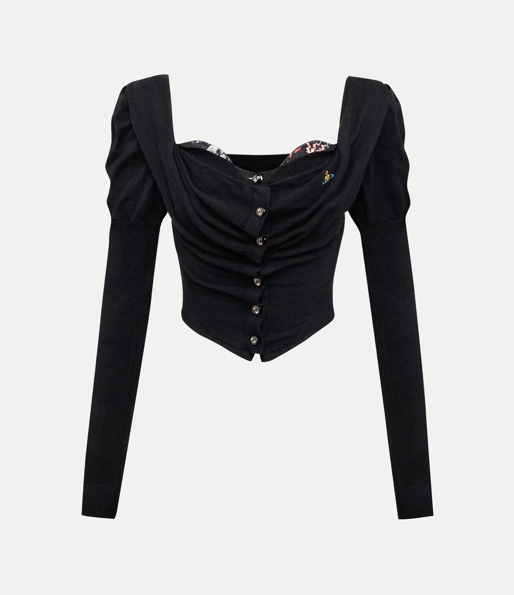 Unsere Bea Corset Strickjacke ist aus einer weichen Baumwoll-Kaschmir-Mischung gefertigt und wird mit schimmernden Perlmuttknöpfen geschlossen. Das Modell zeichnet sich durch ein kontrastreiches Design im Korsettstil und elegante Drapierungen am Ausschnitt aus und wird durch aufwendig gepuffte Schultern für eine skulpturale Silhouette abgerundet.