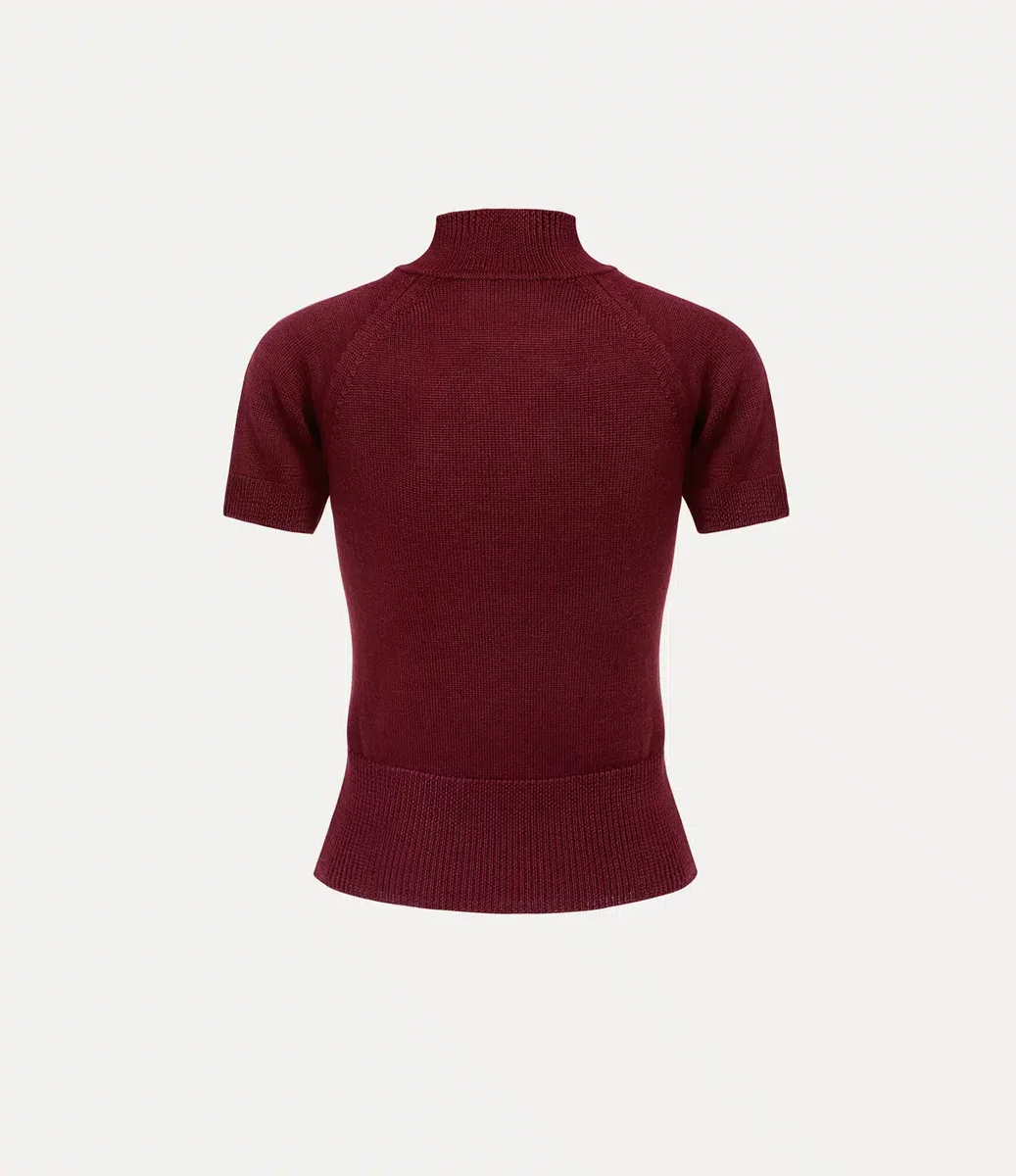 Unser Bea Rollkragenpullover ist aus weicher Wolle gefertigt und verfügt über einen mittelhohen Ausschnitt, der in einen dezent verkürzten Saum übergeht. Das Modell mit kurzen Raglanärmeln und gerippten Bündchen ist mit einer mehrfarbigen Stickerei auf der Brust verziert – ein Symbol für Viviennes Vision, Tradition in die Zukunft zu tragen.