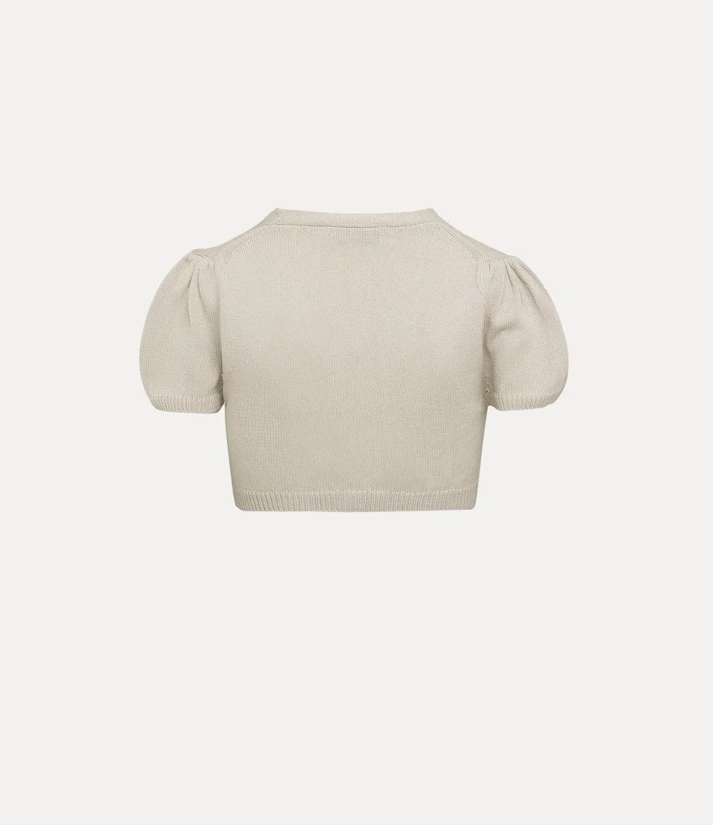 Die Strickjacke Ida von Vivienne Westwood ist aus einer weichen Baumwoll-Kaschmir-Mischung gefertigt und mit den für das Haus typischen bernsteinfarbenen Knöpfen versehen.