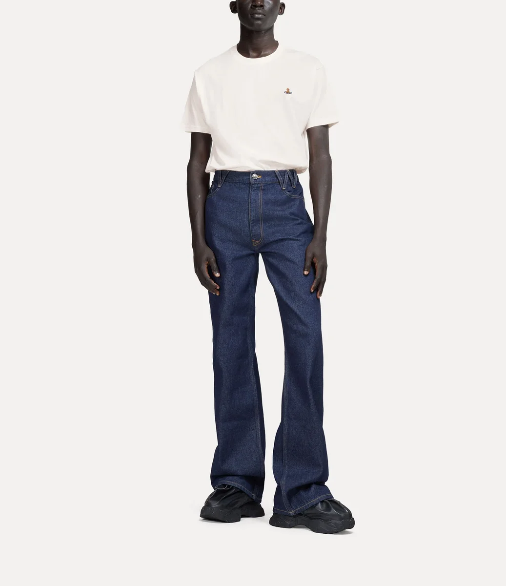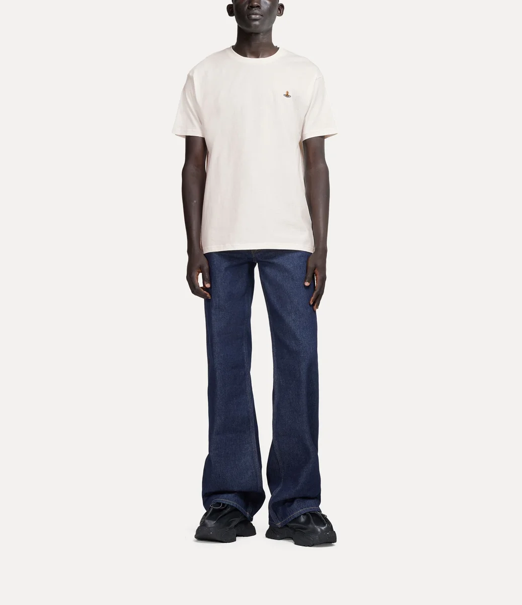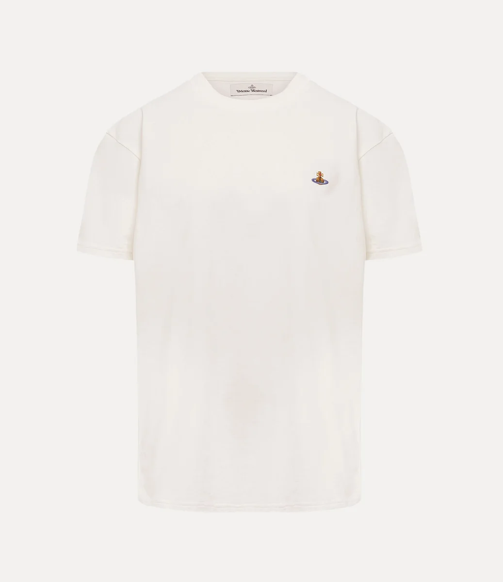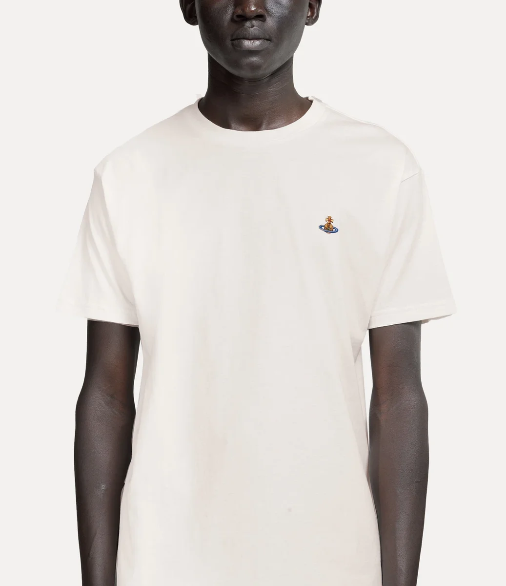 Unser klassisches T-Shirt hat eine weiche Baumwollsilhouette mit kurzen Ärmeln und Rundhalsausschnitt. Auf der linken Brustseite befindet sich eine mehrfarbige Orb-Stickerei – ein Symbol für Viviennes Vision, Tradition in die Zukunft zu tragen.