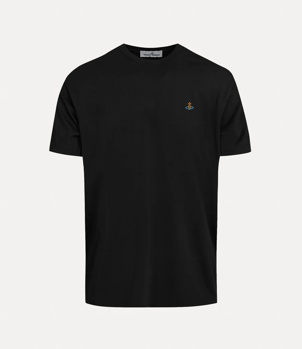 Unser klassisches T-Shirt hat eine weiche Baumwollsilhouette mit kurzen Ärmeln und Rundhalsausschnitt. Auf der linken Brustseite ist es mit einer mehrfarbigen Orb-Stickerei verziert – ein Symbol für Viviennes Vision, Tradition in die Zukunft zu tragen.