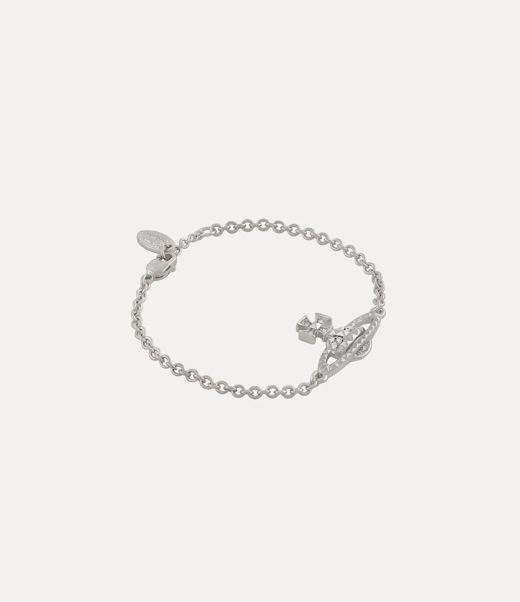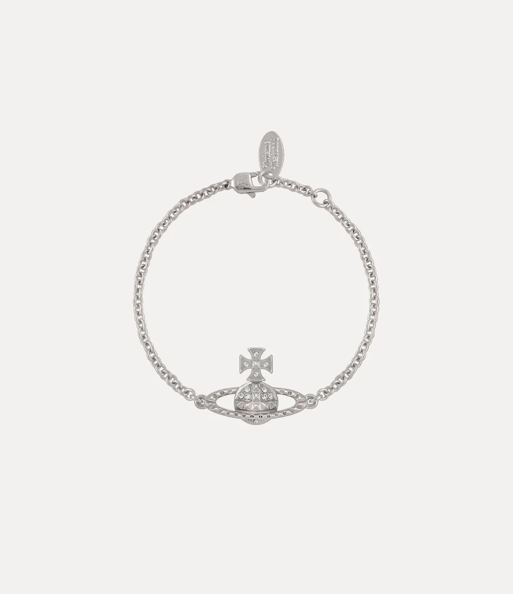 Unser Mayfair Bas Relief Armband wurde in dieser Saison neu interpretiert und mit einer silberfarbenen Beschichtung und weißen Kristallverzierungen versehen. Benannt nach dem Londoner Stadtteil Mayfair, den Vivienne sehr mochte, verfügt das Schmuckstück über Pyramidennieten und unser Bas Relief Orb-Motiv.
