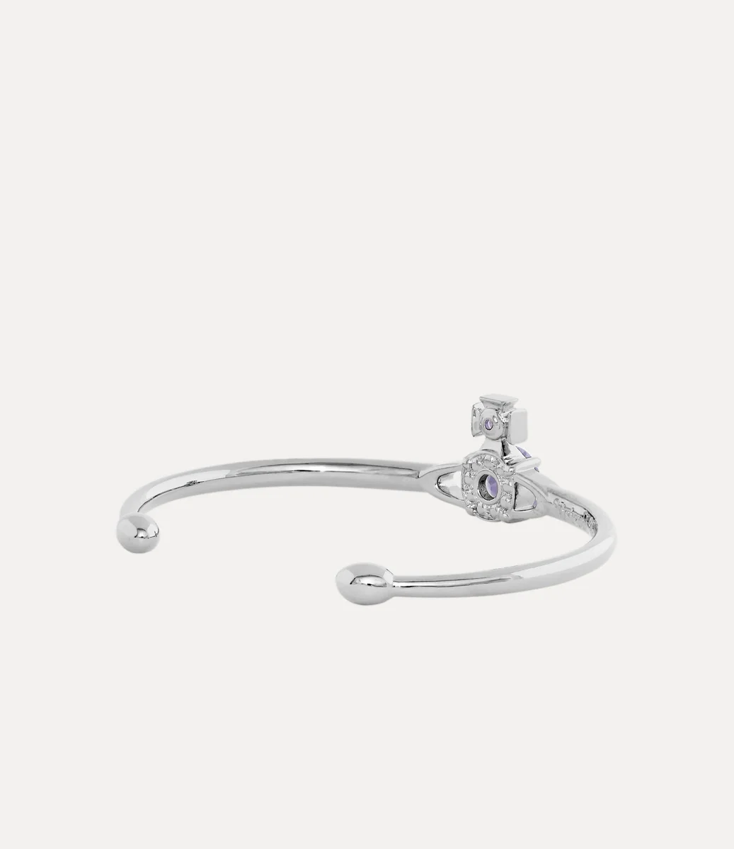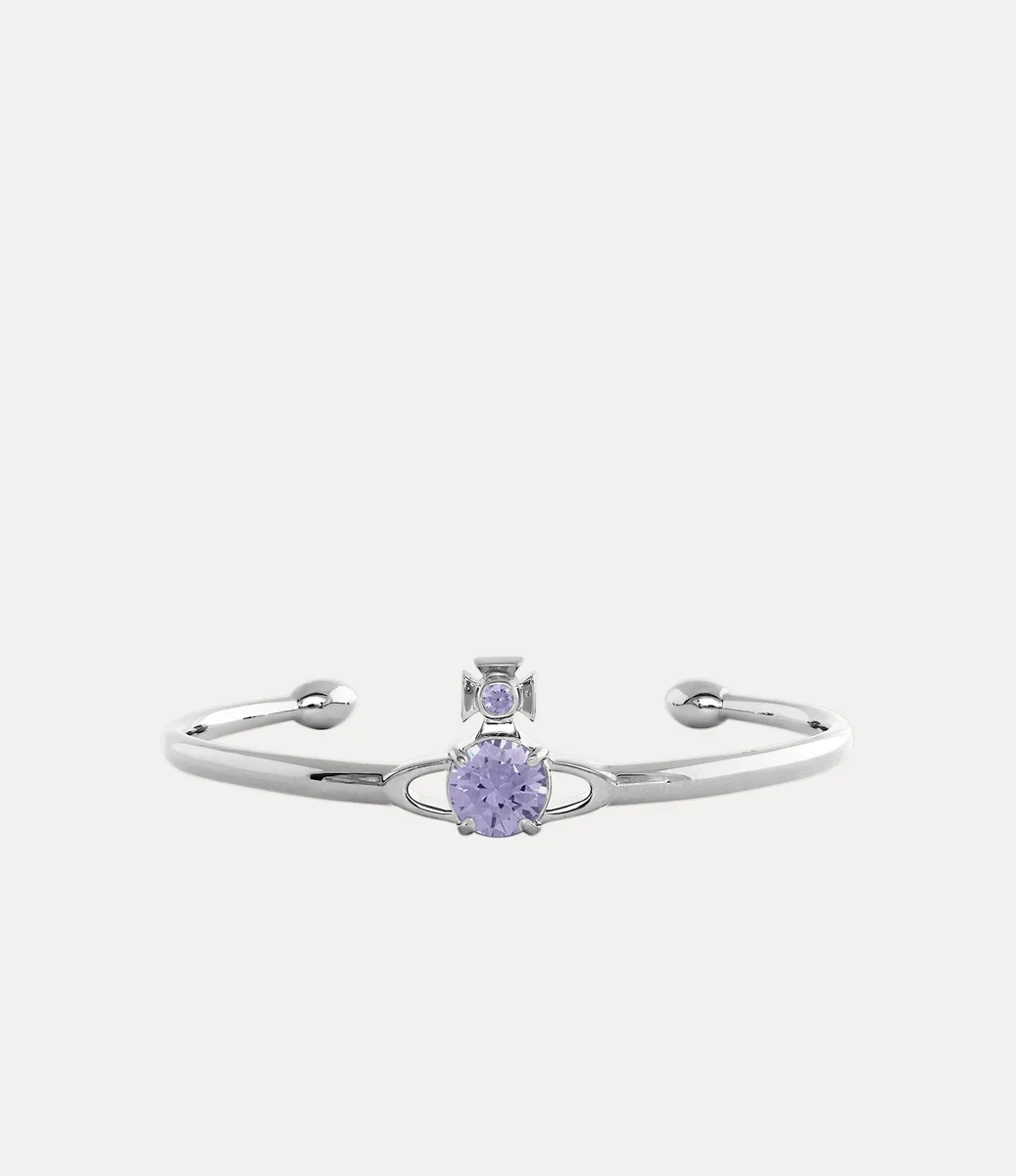 Unser Reina Large Armreif ist ein charakteristisches Design des Hauses mit einem markanten zweidimensionalen lila Orb in der Mitte des Designs, inspiriert vom Orb-Motiv unseres Hauses. Mit glitzernden Kristallen in passenden Farbtönen besetzt, erinnert das Stück an Viviennes Vision, Tradition in die Zukunft zu tragen.