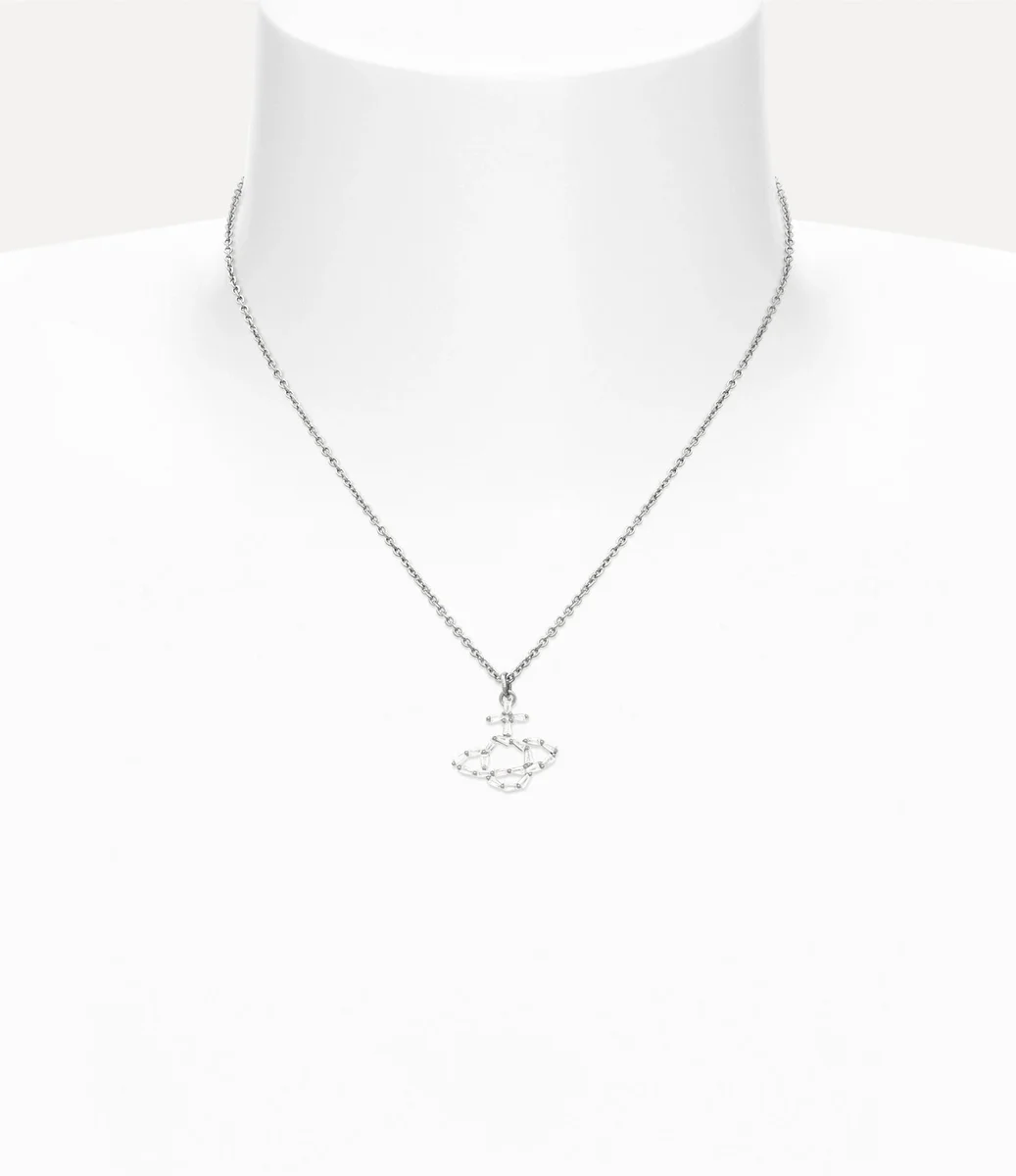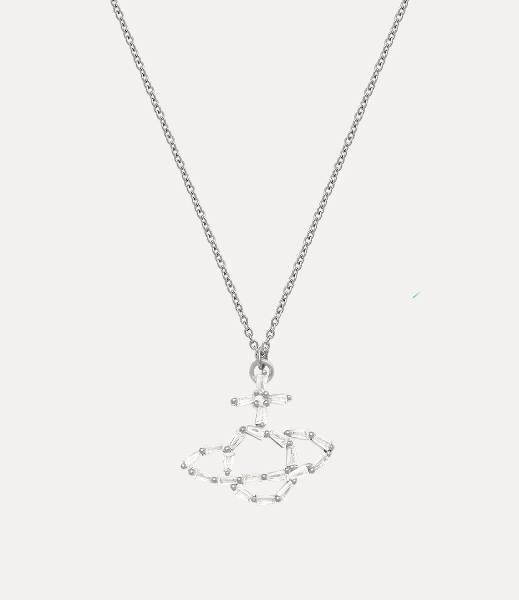 In dieser Saison wird unser charakteristisches Kugelmotiv mit schimmernden, sich verjüngenden Kristallen im Baguette-Schliff neu interpretiert, die aufwendig über das gesamte Design verteilt sind. Die Odetta-Anhänger-Halskette ist mit einer silberfarbenen Beschichtung versehen und verfügt über eine zarte Kette und einen sicheren Karabinerverschluss.