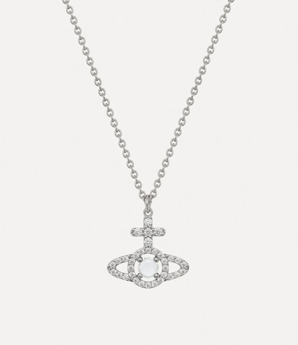 Inspiriert vom zeitlosen Olympia-Design des Hauses, verfügt die Olympia Zirkonia-Anhänger-Halskette über einen großen facettierten Kristall in der Mitte, umrahmt von klaren Steinen in Pavé-Fassung, die die Kugelform nachzeichnen. Das Stück hängt an einer zarten Kette und ist mit einer verstellbaren Verlängerung und einem sicheren Karabinerverschluss versehen.