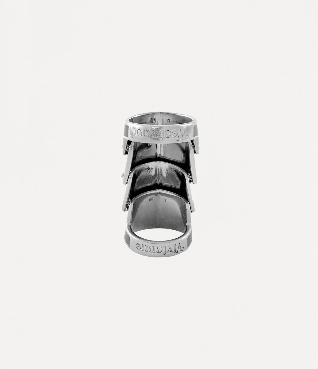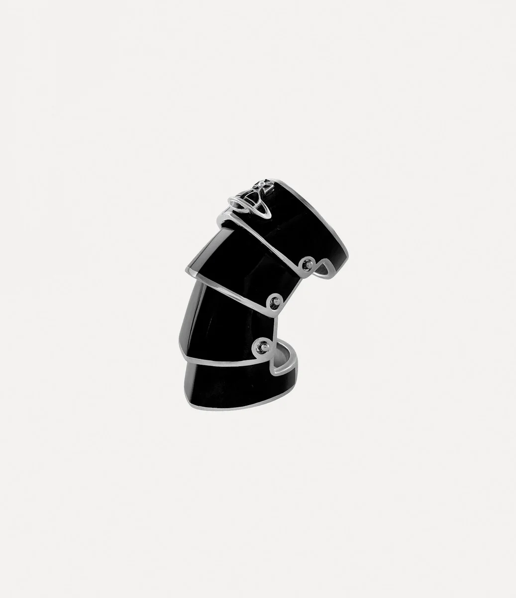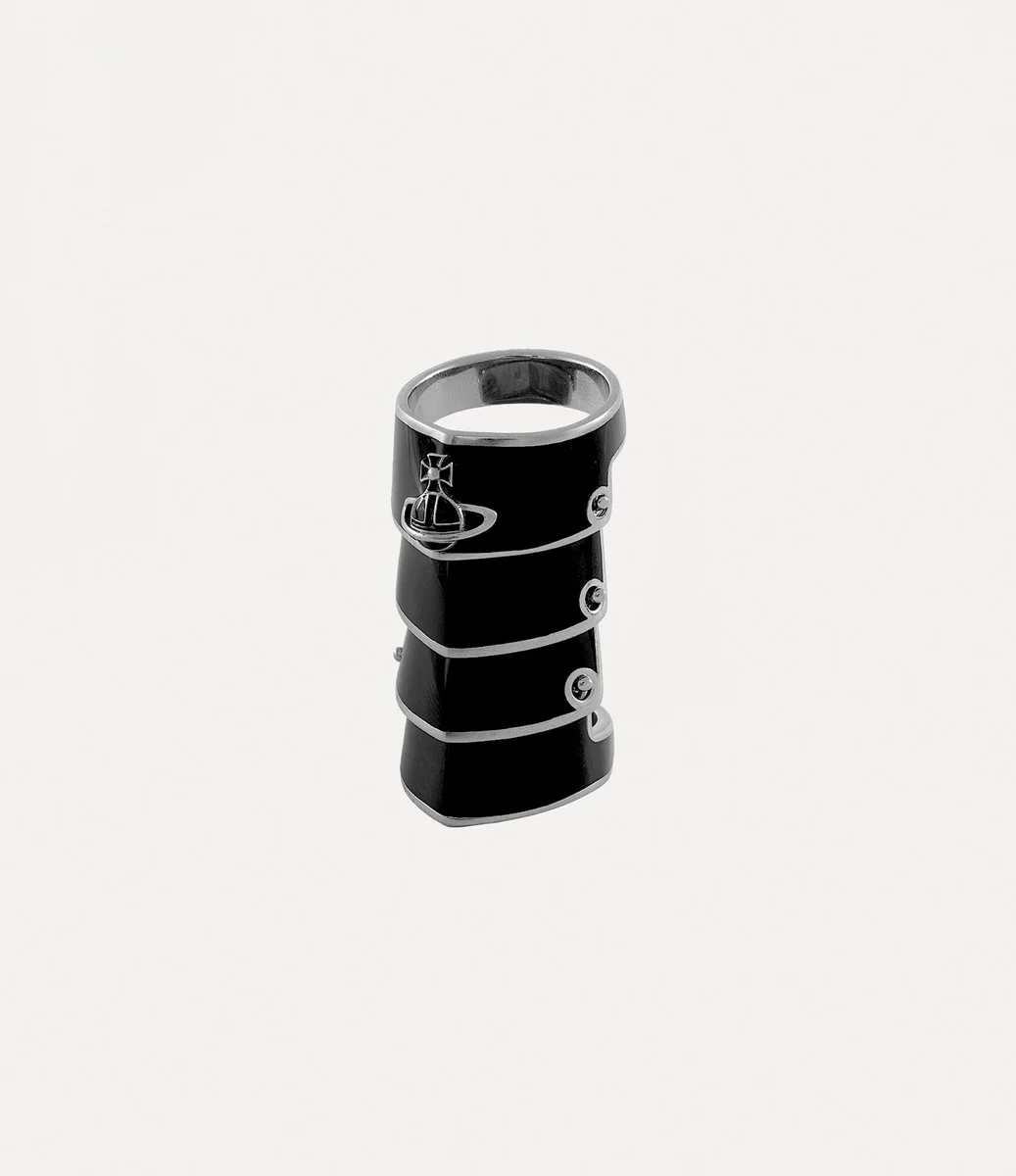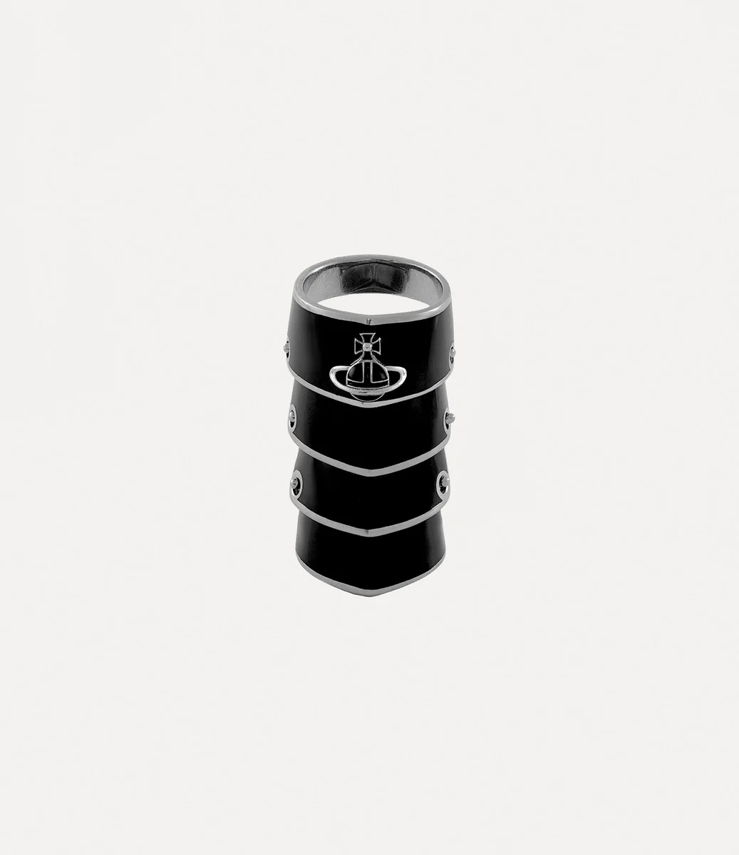 Der Artemis-Ring ahmt das Design der von Rüstungen inspirierten Jacken aus der „Time Machine”-Kollektion von Vivienne Westwood aus dem Jahr 1988 nach und spiegelt Viviennes tiefe Faszination für die Wallace Collection wider. Das Schmuckstück besteht aus handbemalten Emaille-Elementen, die sich überlappen und mit unserem charakteristischen Kugelmotiv verziert sind – ein Symbol für die Verbindung der Vergangenheit mit der Zukunft.