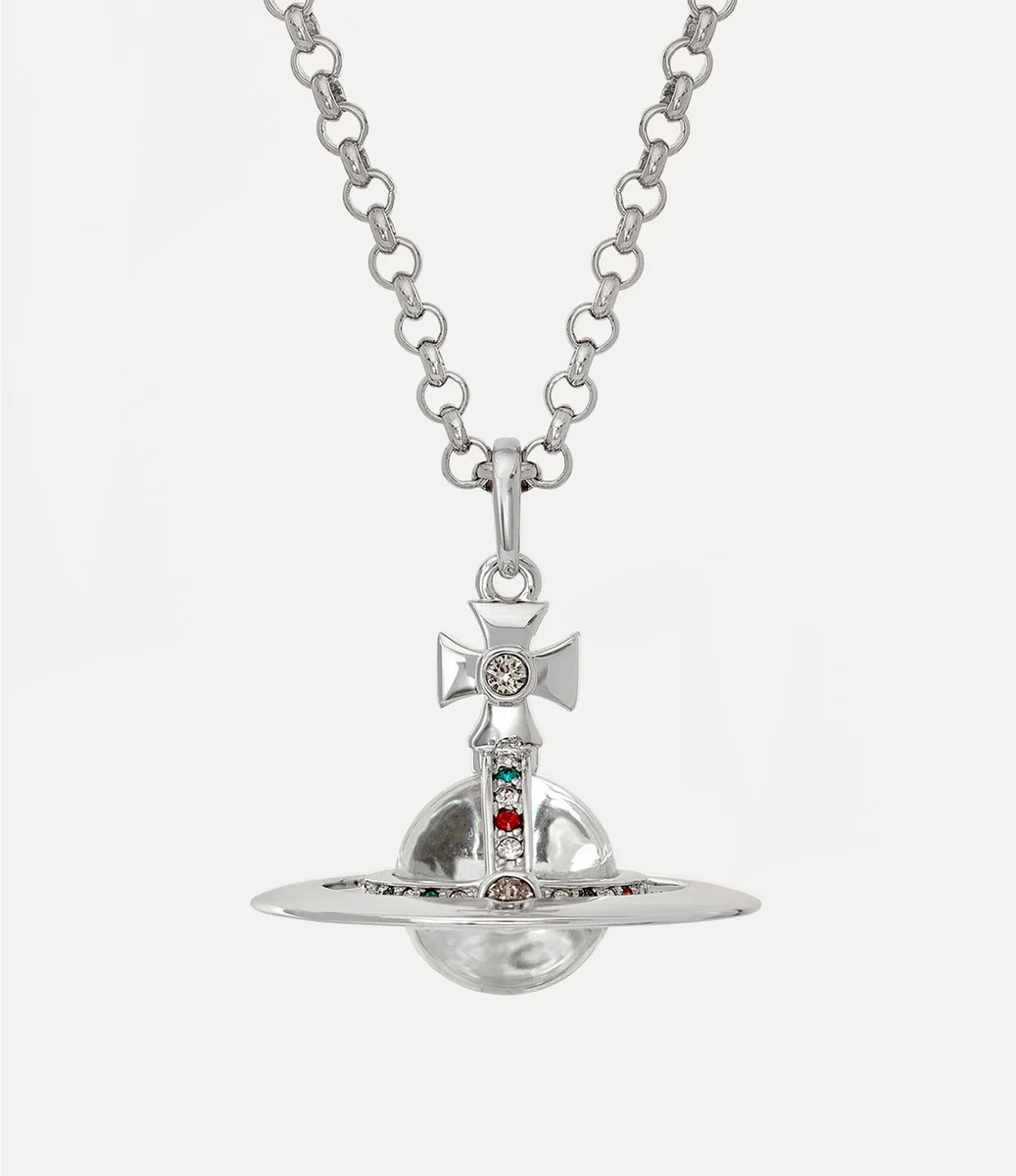 Unsere neue Halskette mit kleinem Orb-Anhänger verfügt über einen markanten dreidimensionalen Orb mit einer klaren Glaskugel in der Mitte, inspiriert vom ikonischen Orb-Motiv des Hauses, das an Viviennes Vision erinnert, Tradition mit Zukunft zu verbinden. Die Halskette ist mit einer Reihe von bunten Kristallen besetzt und wird durch ein geprägtes Etikett am Verschluss abgerundet.