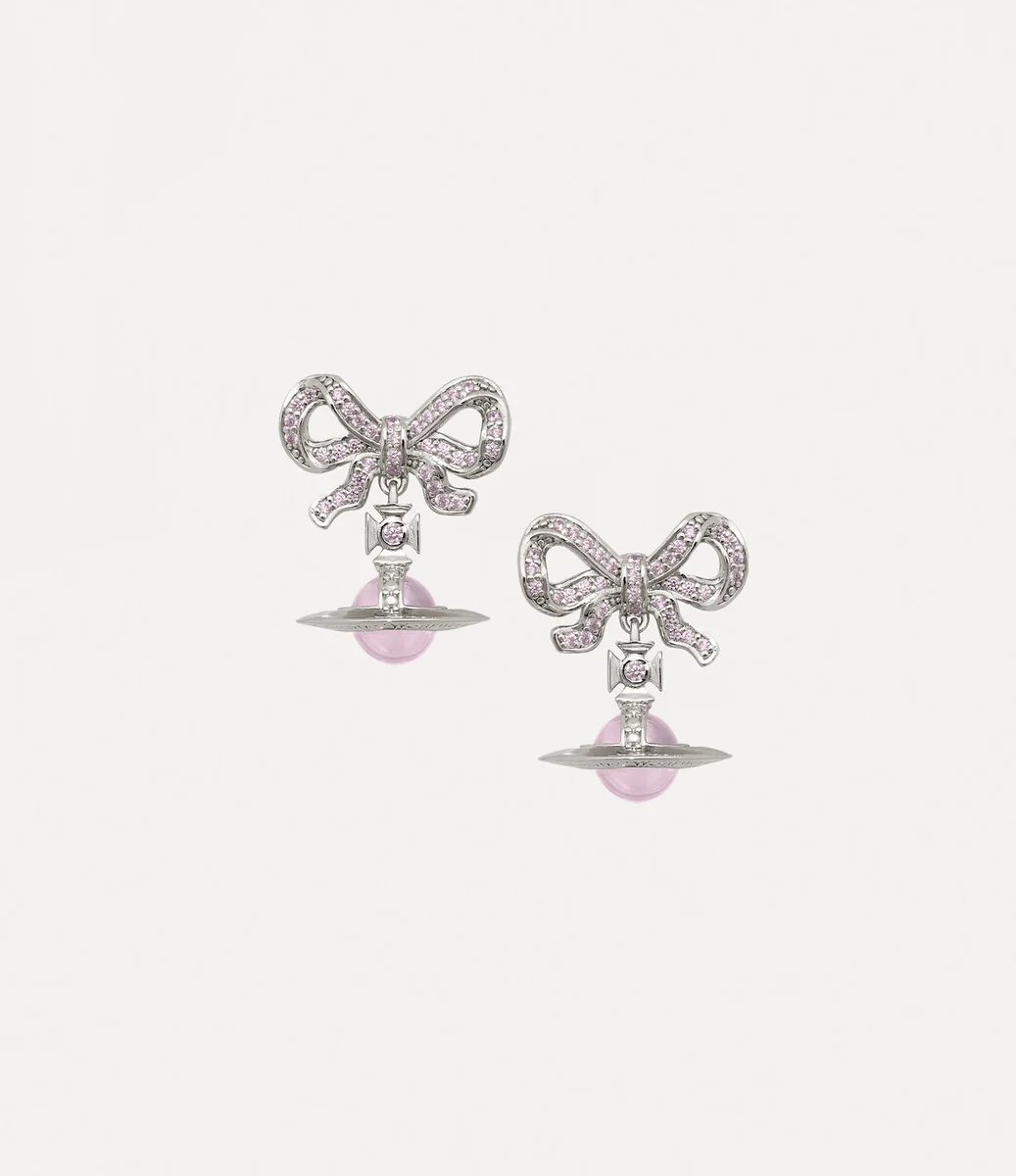 Unsere Octavie-Ohrringe zeichnen sich durch ein von georgianischem Schmuck inspiriertes Bogen-Design aus, das mit funkelnden Kristallen in Rosatönen im Pavé-Setting verziert ist. Das Schmuckstück verfügt über das charakteristische dreidimensionale Kugelmotiv des Hauses, das in platinfarbenem Silber gehalten ist und in dessen Mitte sich eine zarte rosa Kristallkugel befindet.
