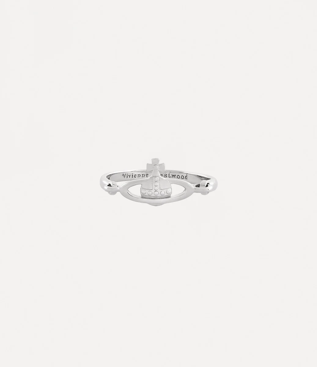Unser Vendome-Ring aus platinbeschichtetem Silber zeichnet sich durch ein zartes Banddesign aus, das durch ein ausgeschnittenes Kugelmotiv auf der Vorderseite ergänzt wird, das sich auf seinen Scharnieren drehen lässt – ein Symbol für Viviennes Vision, Tradition in die Zukunft zu tragen. Abgerundet wird das Schmuckstück durch die Gravur des charakteristischen Typografie-Motivs unseres Hauses auf der Innenseite.
