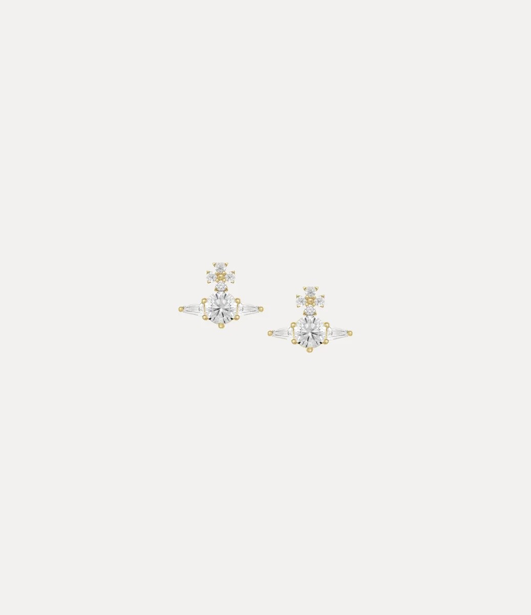 Unsere Ofelia Ohrringe zeichnen sich durch eine goldfarbene Kugelform aus, die von dem für unser Haus typischen Kugelmotiv inspiriert ist. Das mit glitzernden runden und konischen Zirkonia-Baguette-Kristallen besetzte Design spiegelt Viviennes Vision wider, Tradition in die Zukunft zu tragen.