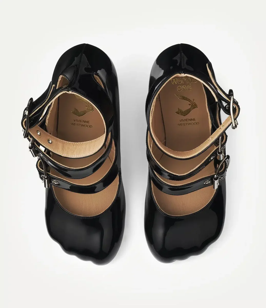 Unsere Animal Toe Three-Strap Schuhe zeichnen sich durch ein glänzendes Lackfinish und ein römisch inspiriertes Obermaterial mit drei Riemen aus, das an die ikonischen römischen Sandalen mit drei Riemen aus der Tradition des Hauses angelehnt ist. Die charakteristische tierförmige Zehenkappe, die erstmals in der Frühjahr/Sommer-Kollektion 2000 „Summertime” vorgestellt wurde, ahmt die Form einer Tierpfote nach, hinterlässt einen einzigartigen Abdruck und wird durch klassische Schnallenverschlüsse ergänzt.