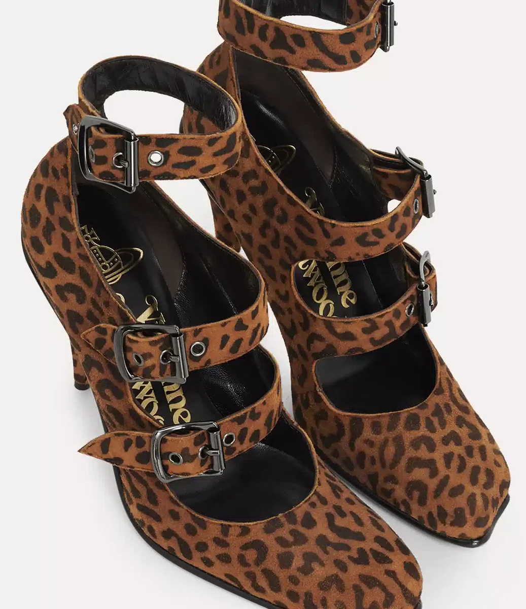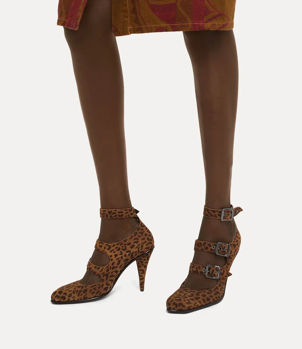 Unsere Savage-Heels zeichnen sich durch eine anatomische Silhouette aus, die vom charakteristischen „Animal Toe”-Motiv des Hauses inspiriert ist, das erstmals in der Frühjahr/Sommer-Kollektion 2000 „Summertime” vorgestellt wurde. Das aus Leder gefertigte Modell ist mit einem Vintage-inspirierten Leopardenmuster aus Wildleder bedruckt und mit Beschlägen in Gunmetal-Optik versehen.