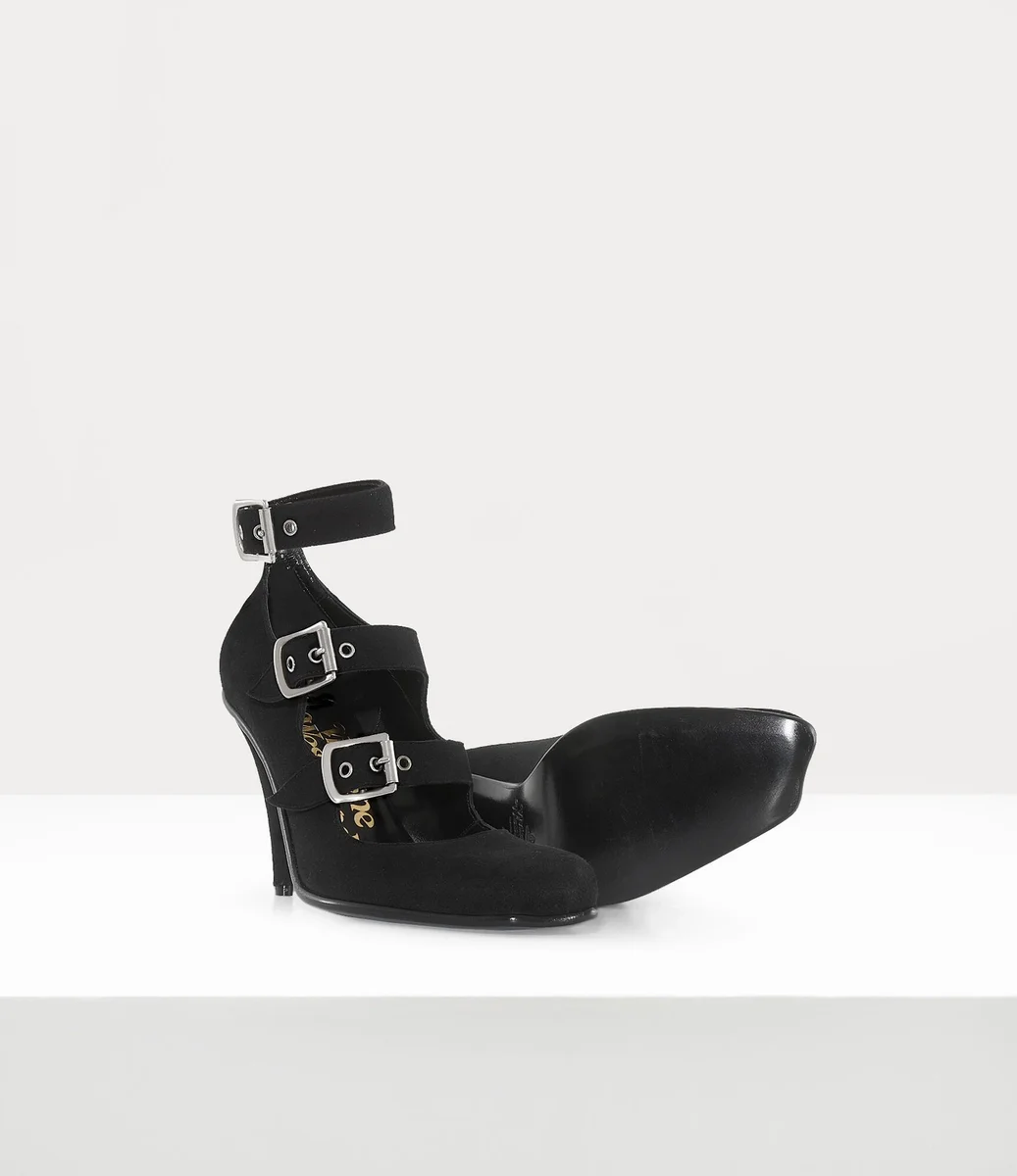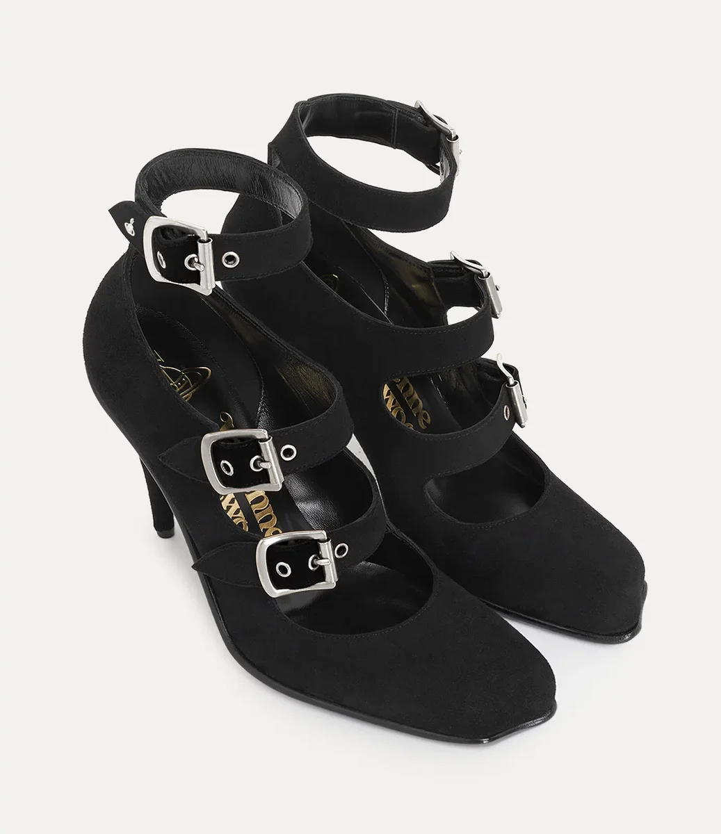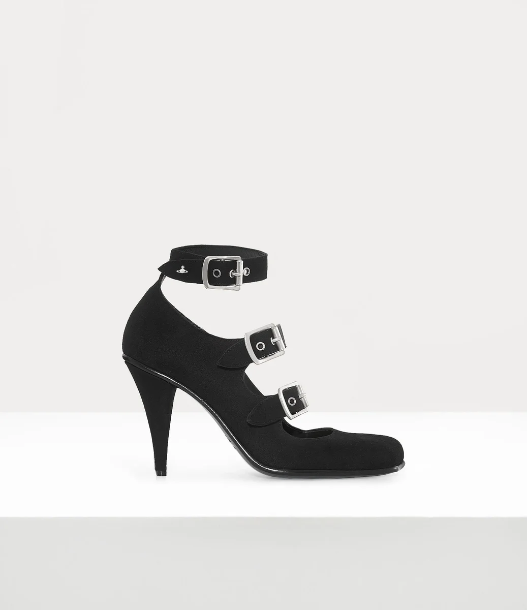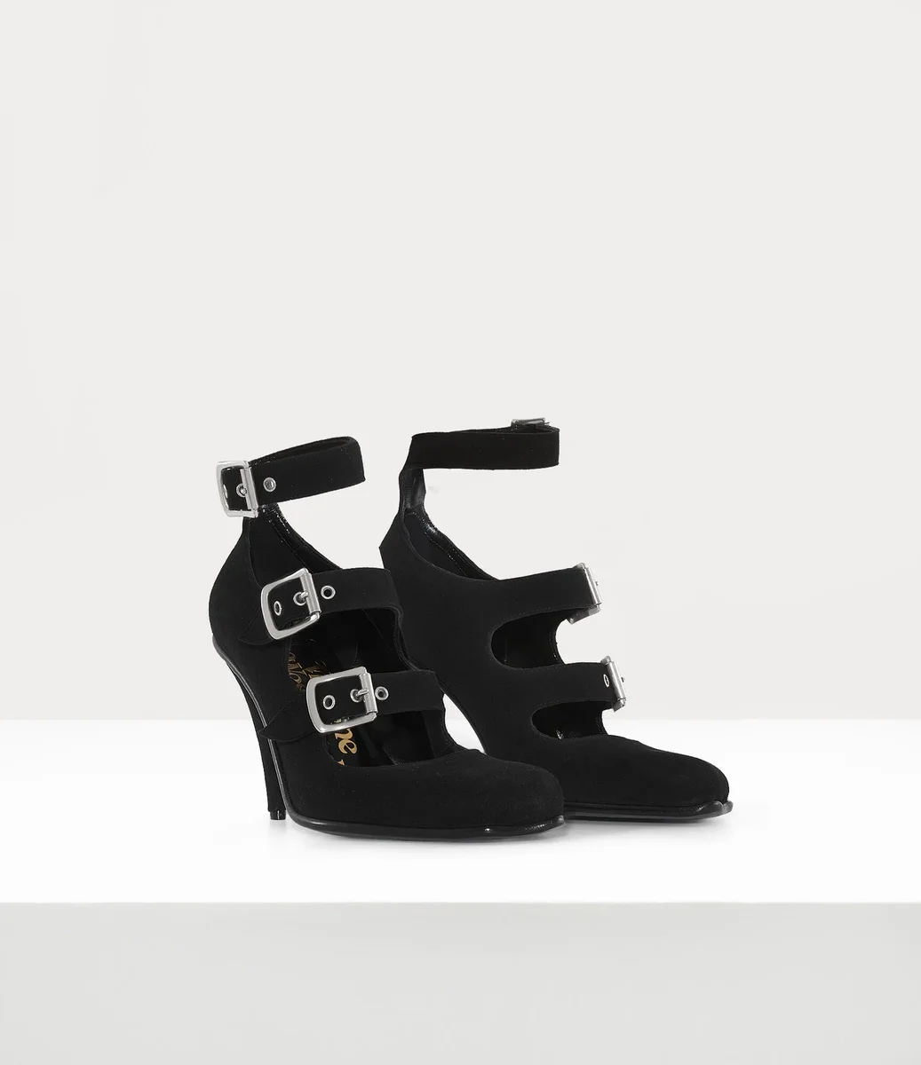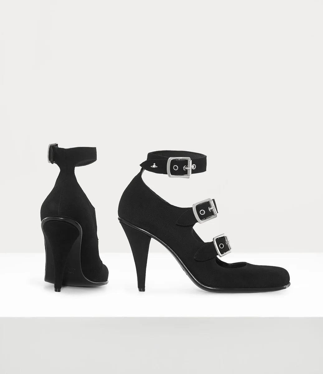 Unsere Savage-Absätze zeichnen sich durch eine anatomische Silhouette aus, die vom ikonischen „Animal Toe”-Motiv des Hauses inspiriert ist, das erstmals in der Frühjahr/Sommer-Kollektion 2000 „Summertime” vorgestellt wurde. Das aus Wildleder gefertigte Design wird durch elegante silberfarbene Metallbeschläge und ein Miniatur-Kugelmotiv auf dem Riemen abgerundet.