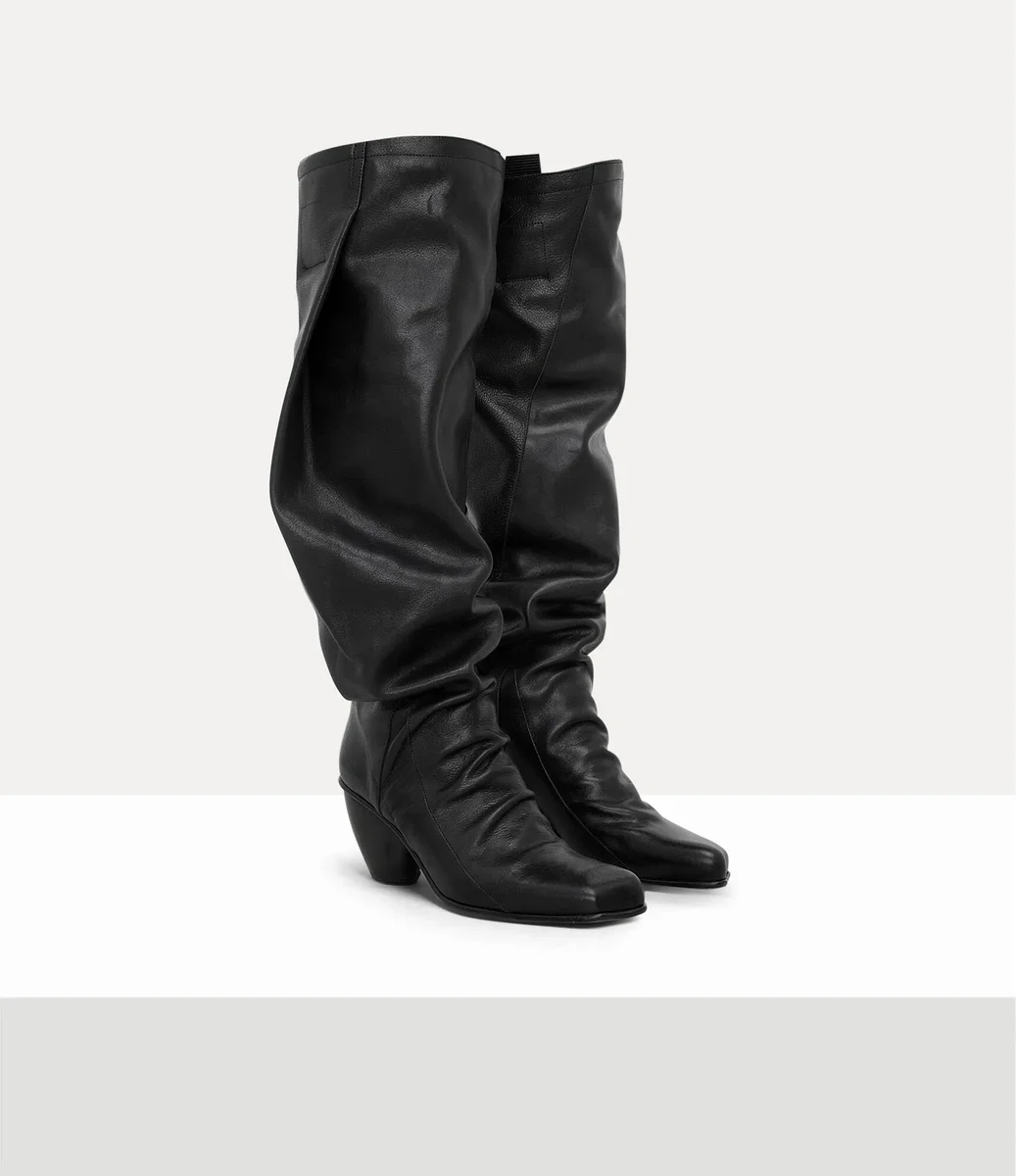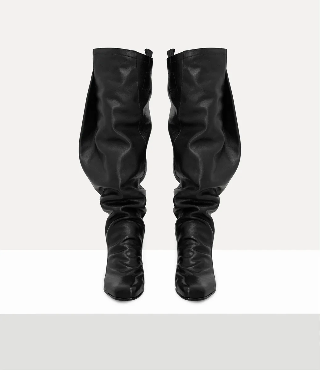 Unser River Boot ist eine Neuentwicklung dieser Saison und zeichnet sich durch eine anatomische Silhouette aus, die an das charakteristische „Animal Toe”-Motiv des Hauses erinnert, das erstmals in der „Summertime”-Kollektion für Frühjahr/Sommer 2000 vorgestellt wurde. Das Design zeichnet sich durch eine kniehohe Silhouette aus, die durch ein Undercut-Detail am Kegelabsatz ergänzt wird.