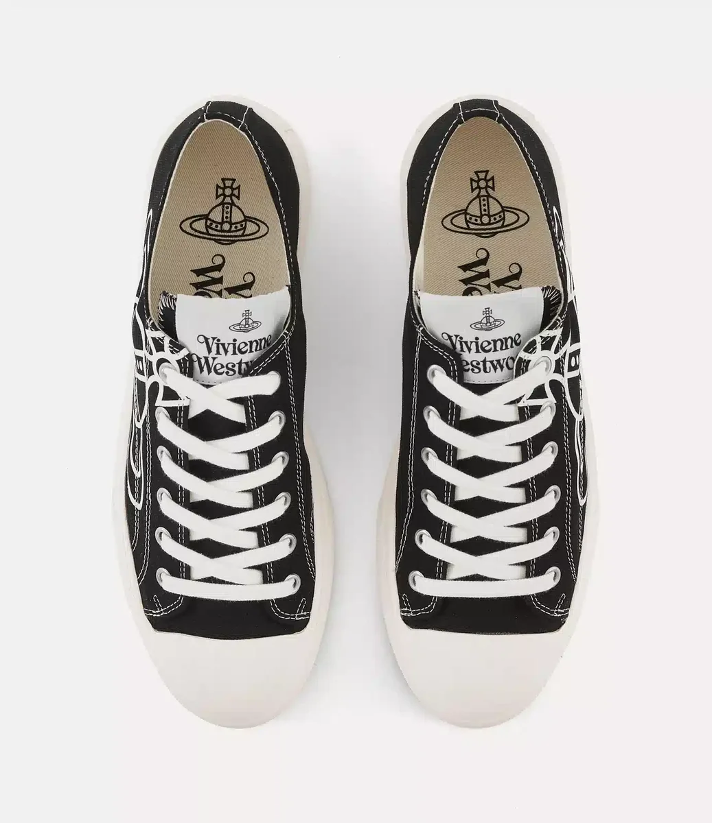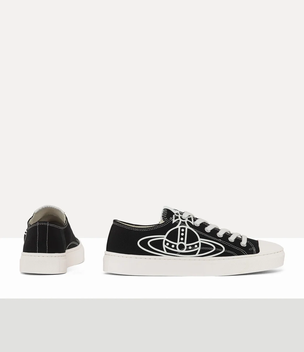 Unsere Low-Top-Canvas-Turnschuhe sind mit dem Archivmotiv „Line Orb” des Hauses verziert – ein Synonym für Viviennes Vision, Tradition in die Zukunft zu tragen. Das Modell verfügt über ein Baumwoll-Canvas-Finish und ist mit einem gewebten Label auf der Zunge verziert.