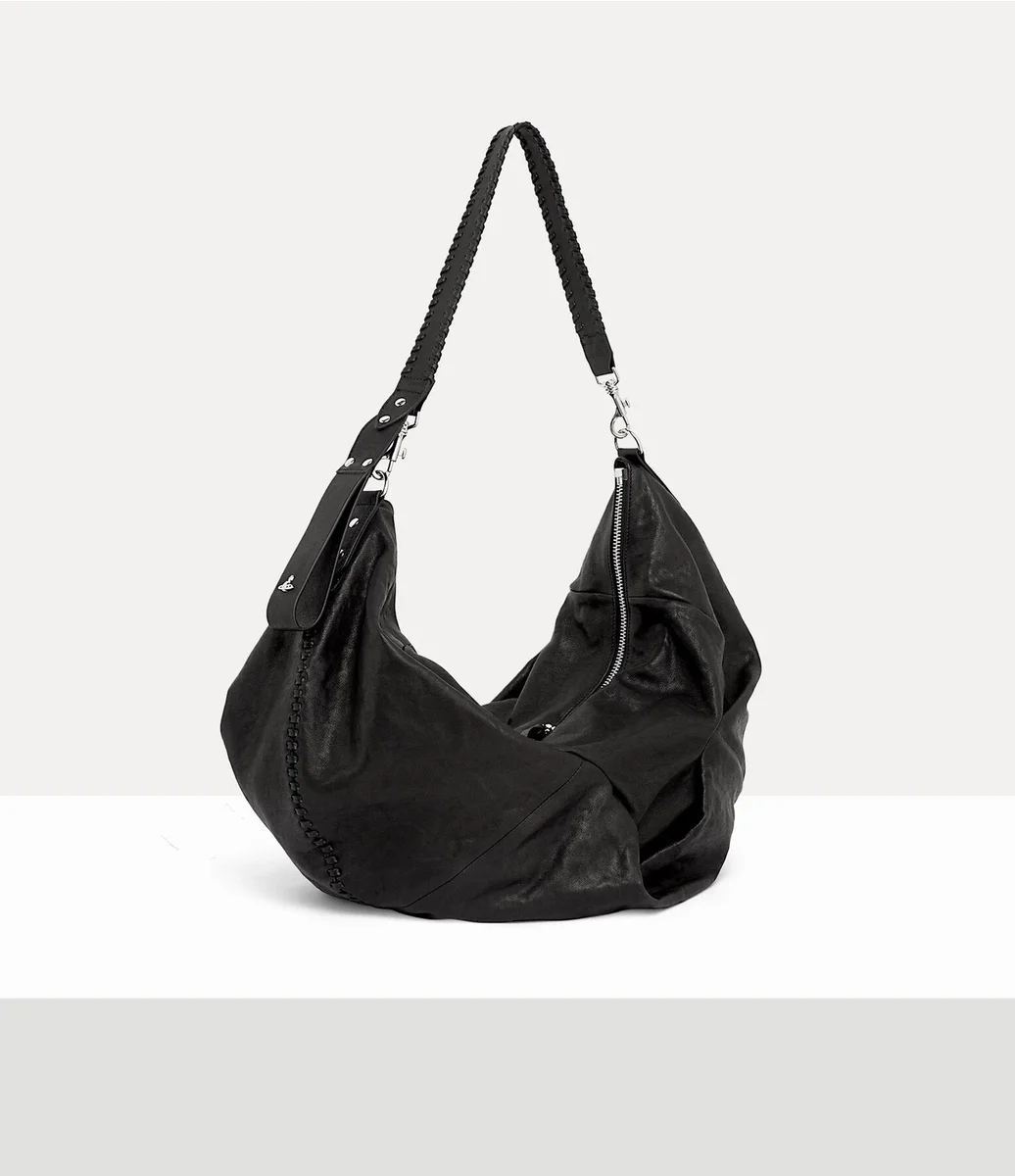 Unsere große Schultertasche Agnes hat eine drapierte Silhouette, die an die archivierten Techniken des geschwungenen Schnitts angelehnt ist, die erstmals in unserer Herbst/Winter-Kollektion 2001 „Wild Beauty” zu sehen waren. Das Design zeichnet sich durch ein gewaschenes Lederfinish aus und wird durch einen gewebten Ledergriff ergänzt, der an die Bondage-Peitschen erinnert, die in unserer legendären SEX-Boutique verkauft wurden.