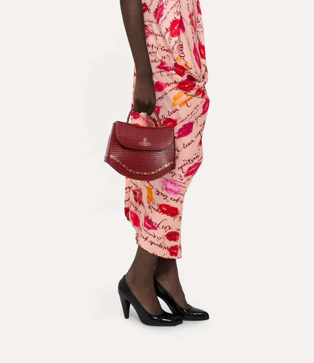 Unsere Chloe Top Handle Tasche ist aus weichem Kalbsleder gefertigt und mit dem in dieser Saison angesagten „Mini”-Krokodilleder-Prägemuster versehen. Goldfarbene Folienverzierungen betonen die geschwungene Silhouette, die von antiken Schmuckkästchen inspiriert ist.