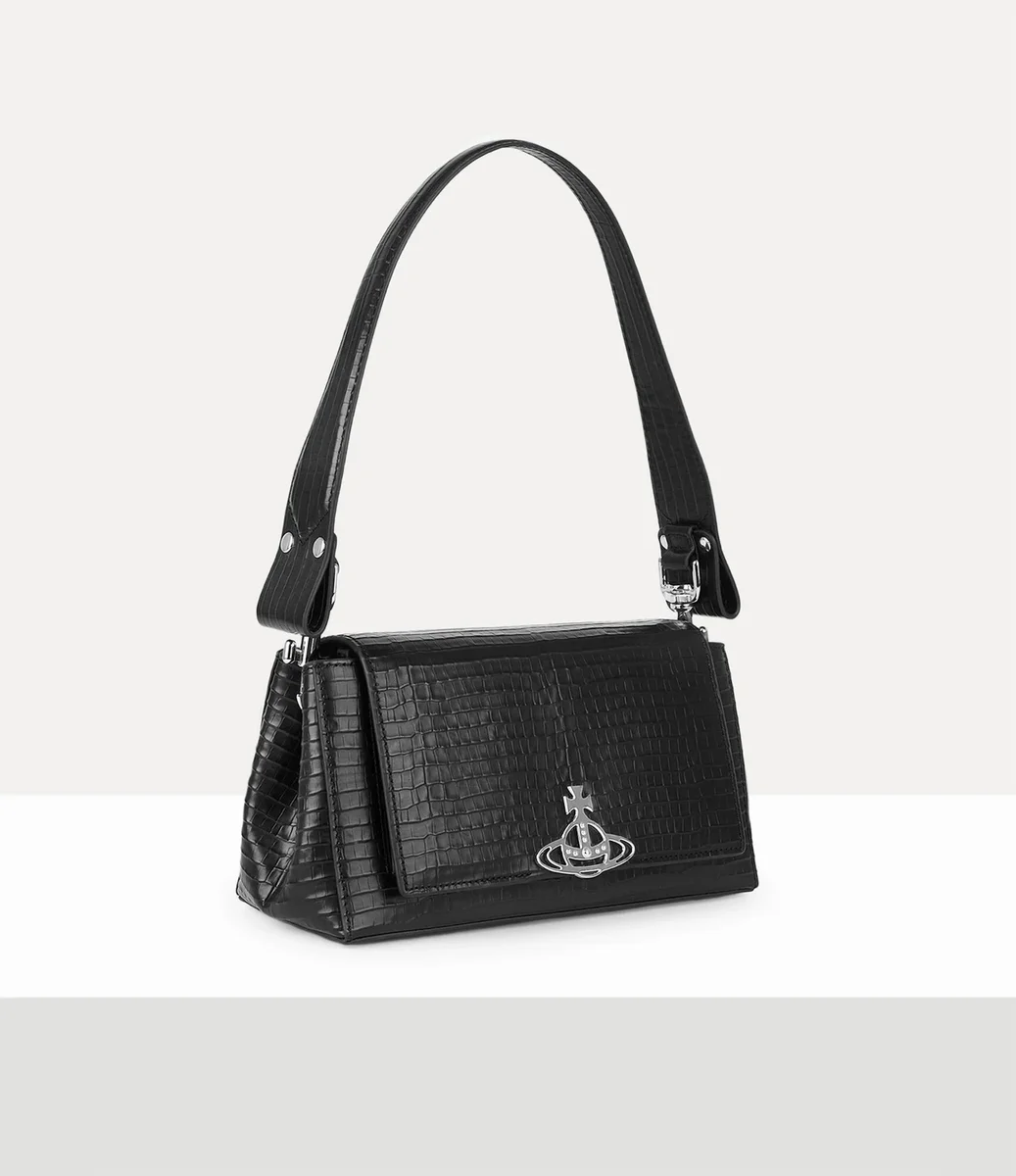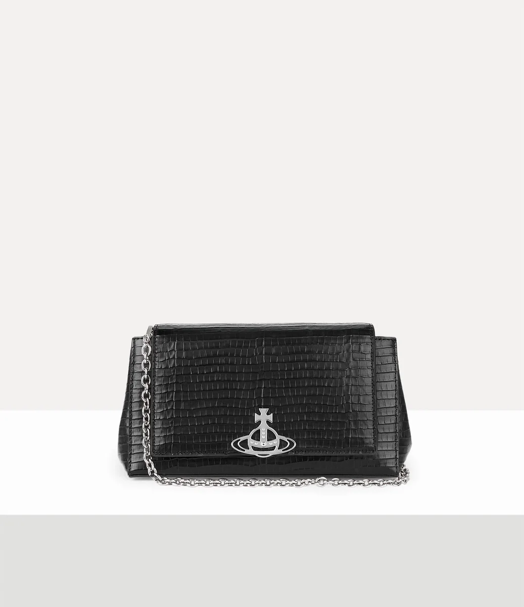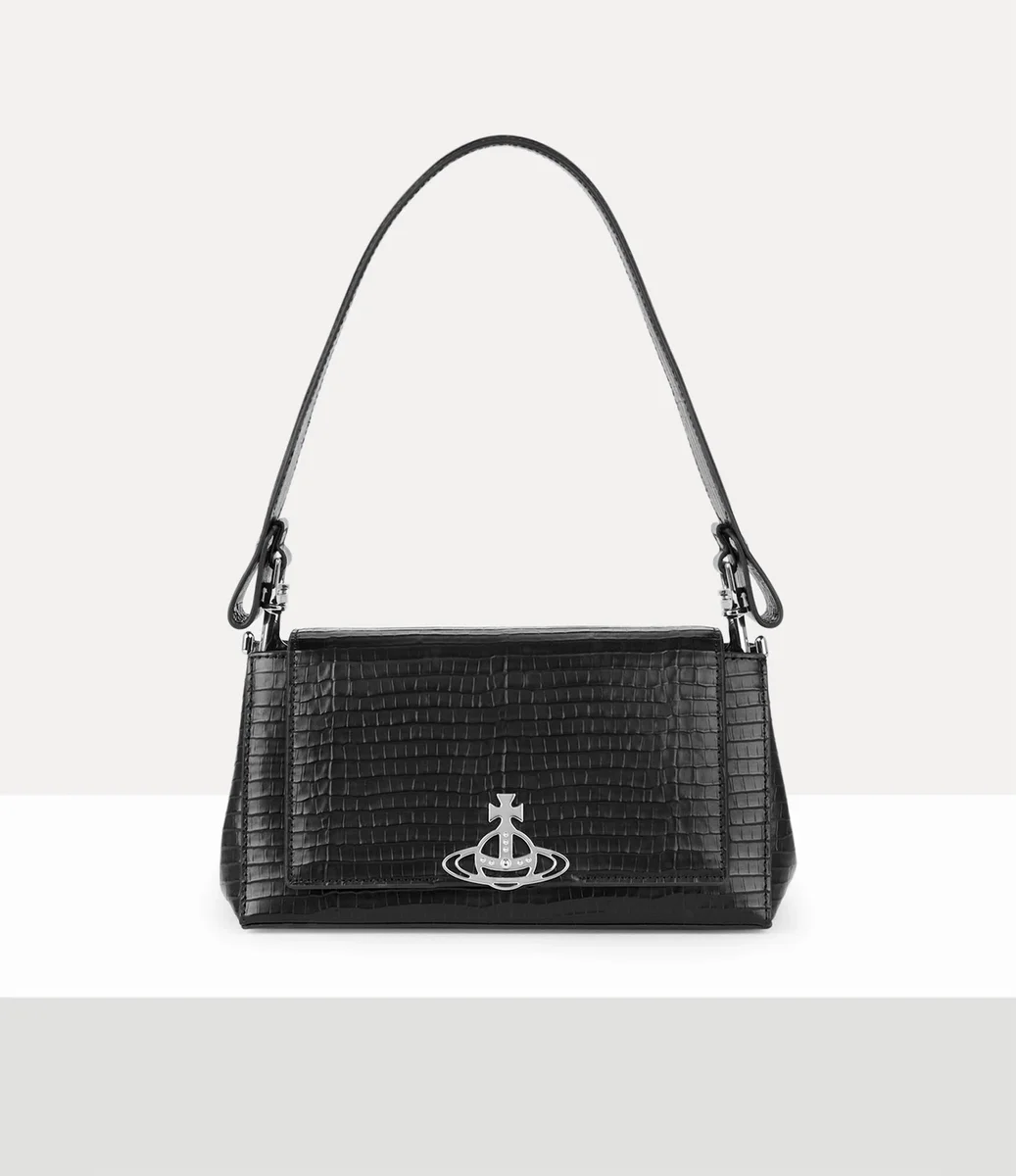 Unsere Handtasche Hazel Medium ist aus Leder gefertigt und in dieser Saison mit einer raffinierten „Mini”-Krokodilprägung versehen. Das Modell ist mit dezentem Moiré-Stoff gefüttert und auf der Vorderseite mit dem charakteristischen „Line Orb”-Motiv des Hauses verziert, das Tradition symbolisiert und von den himmlischen Ringen des Saturn umgeben ist, die für die Zukunft stehen.