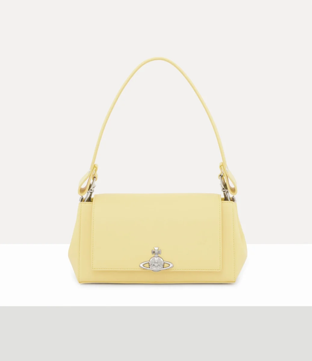 Unsere Handtasche Hazel Medium wurde in dieser Saison aus glattem PU-Leder neu interpretiert und mit klassischen Metallbeschlägen verziert. Die Klappe lässt sich öffnen und gibt den Blick auf ein weiches Baumwollfutter frei, während die Vorderseite mit dem charakteristischen dreidimensionalen Kugelemblem auf der vorderen Klappe verziert ist.