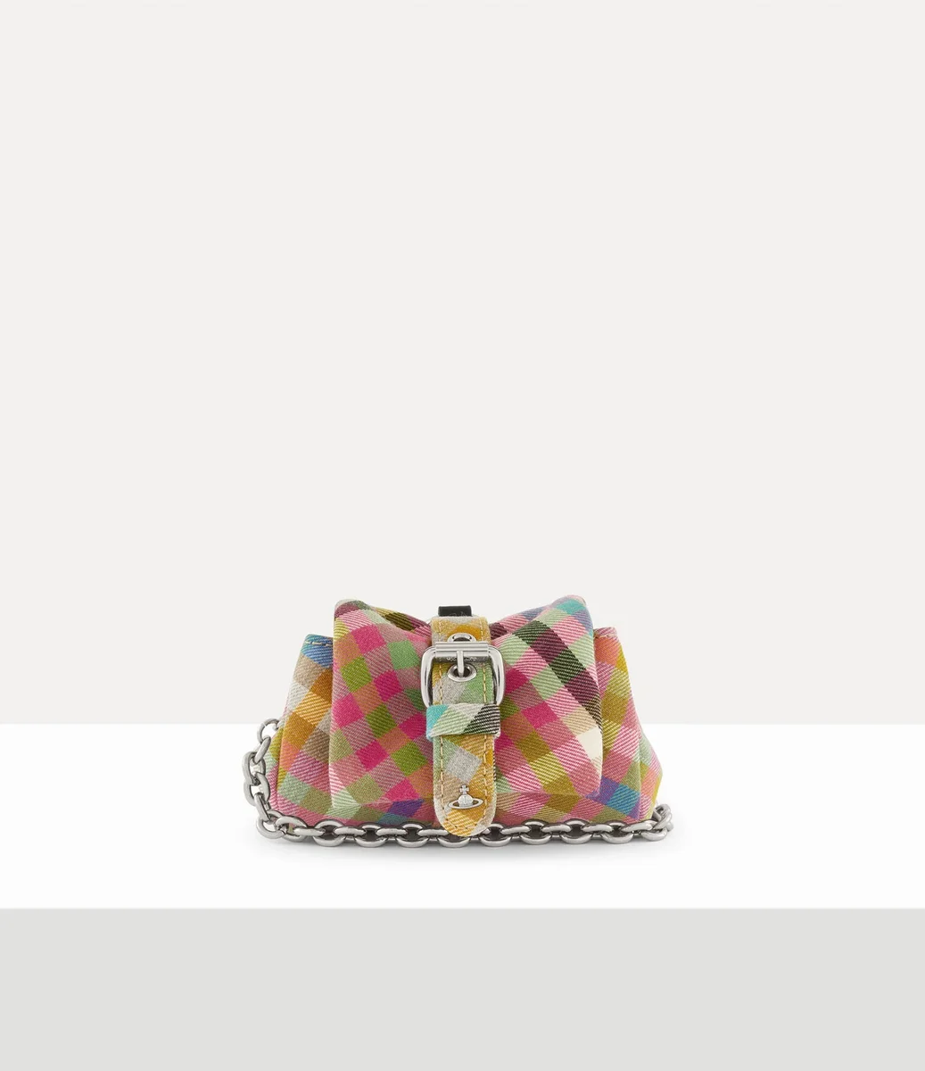 Unsere Hazel Treasure Charm Handtasche interpretiert das charakteristische „Hazel Treasure”-Design des Hauses neu und präsentiert sich in dieser Saison mit dem lebhaften Wollmotiv „Heather Check”. Das Modell verfügt über einen skulpturalen Gürtelriemen, der sich um die weich strukturierte Silhouette legt, und ist auf der Vorderseite mit unserem Relief-Emblem verziert.