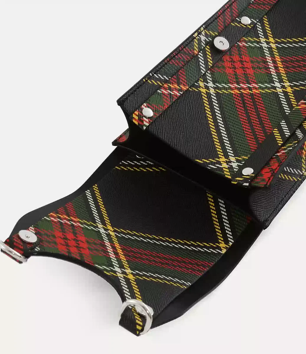 Unsere Max Mini Crossbody Tasche zeichnet sich durch Bondage-inspirierte Elemente aus, die an unsere „Erotic Zones”-Kollektion aus dem Frühjahr/Sommer 1995 erinnern, ergänzt durch silberfarbene Metallbeschläge. Das Modell ist mit unserem lebhaften „Chelsea”-Tartanmuster verziert und mit einem „Line Orb”-Motiv auf der vorderen Klappe versehen.