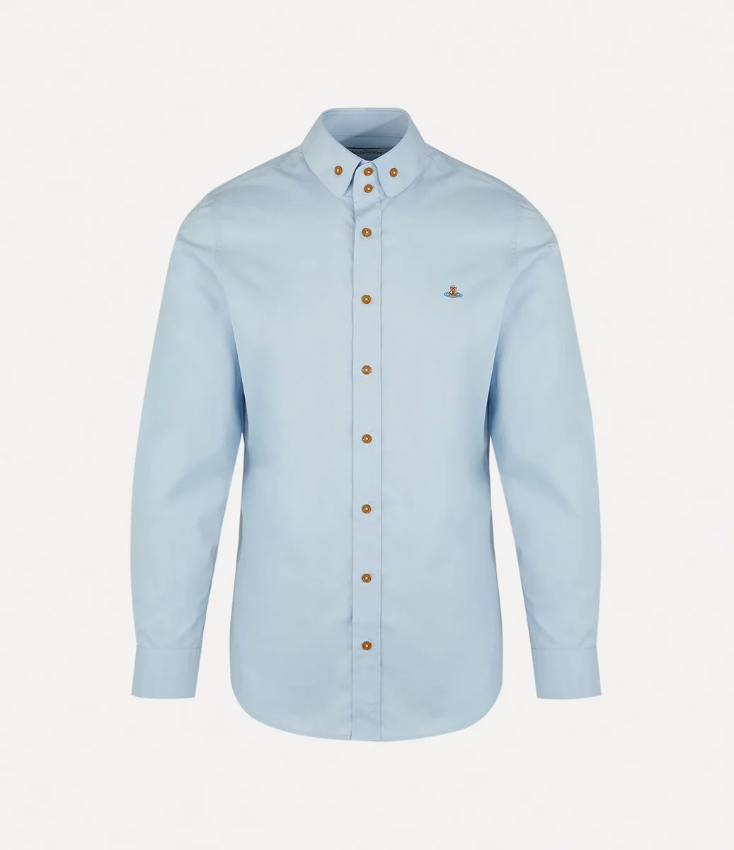 Die Silhouette des Two Button Krall Hemdes ist von einem Archivdesign inspiriert und verfügt über Viviennes ikonischen Zwei-Knopf-Kragen. Das Kleidungsstück ist auf der linken Brustseite mit unserer charakteristischen Orb-Stickerei verziert – ein Symbol für Viviennes Vision, Tradition in die Zukunft zu tragen.