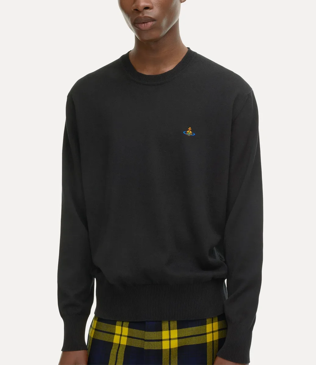 Der Vivienne Westwood Alex Rundhals-Pullover aus weicher Baumwoll-Kaschmir-Mischung ist auf der linken Brustseite mit dem mehrfarbigen Orb-Motiv des Hauses verziert.
