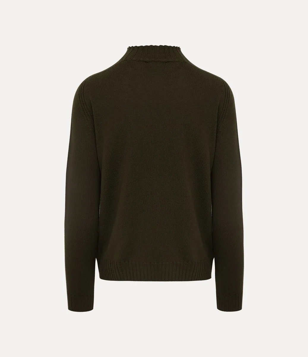 Unser Fisherman-Pullover ist aus weicher Wolle gefertigt und verfügt über einen gerippten Ausschnitt, der in einen geraden Saum übergeht. Das Modell mit langen Raglanärmeln und gerippten Bündchen ist auf der linken Brustseite mit einer mehrfarbigen Stickerei verziert, die an Viviennes Vision erinnert, Tradition in die Zukunft zu tragen.