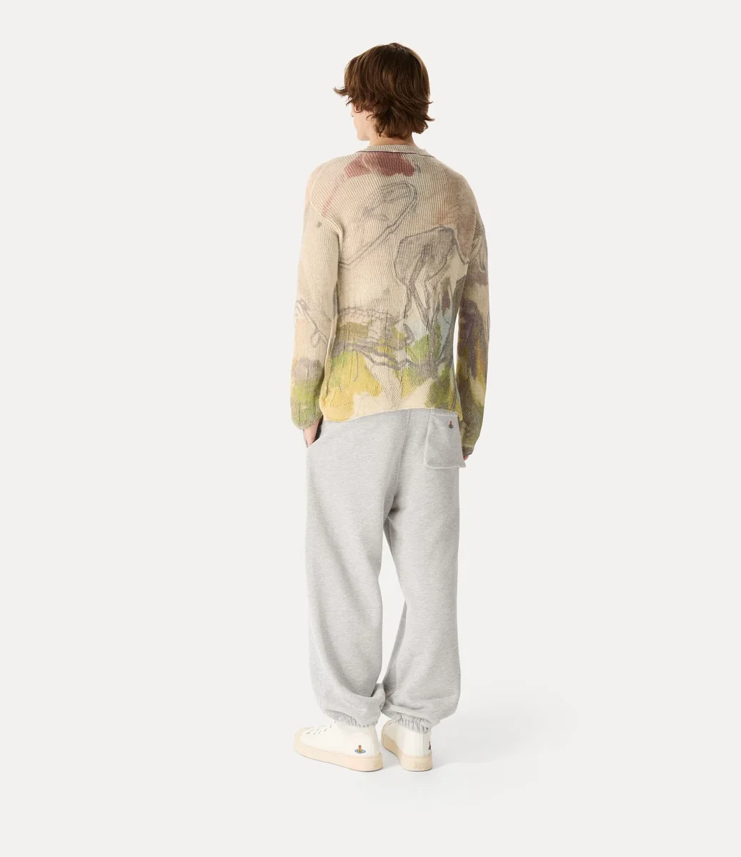 Unser Pullover Kyle ist aus weicher Wolle gefertigt und durchgehend im Rippenstrickmuster gestrickt. Er ist mit dem diesjährigen „Paradise”-Motiv des Künstlers Dominic Myatt bedruckt, das eine mit Müll übersäte Welt in einer ironischen Vision der Utopie darstellt. Das Design wird durch das „Horses with Orb”-Motiv auf der linken Brustseite ergänzt, das mit einem rot-blauen Ombré-Effekt versehen ist.