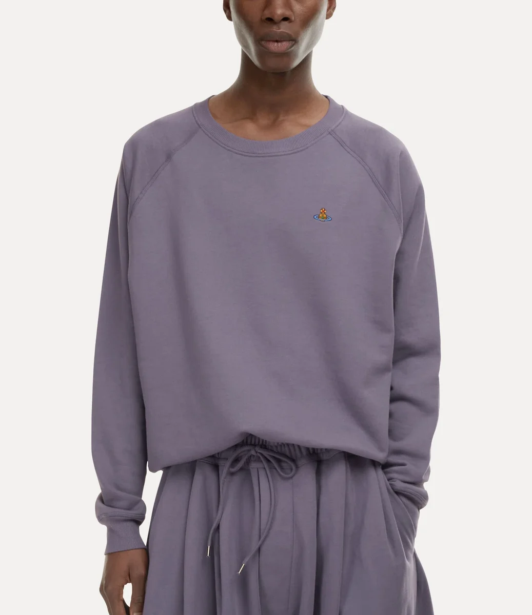 Unser Raglan-Sweatshirt wurde in dieser Saison neu aufgelegt und ist aus weicher Baumwolle gefertigt. Es ist auf der linken Brustseite mit einem mehrfarbigen Kugelmotiv verziert – ein Symbol für Viviennes Vision, Tradition in die Zukunft zu tragen. Das Modell hat einen Rundhalsausschnitt und lange Raglanärmel mit gerippten Bündchen.