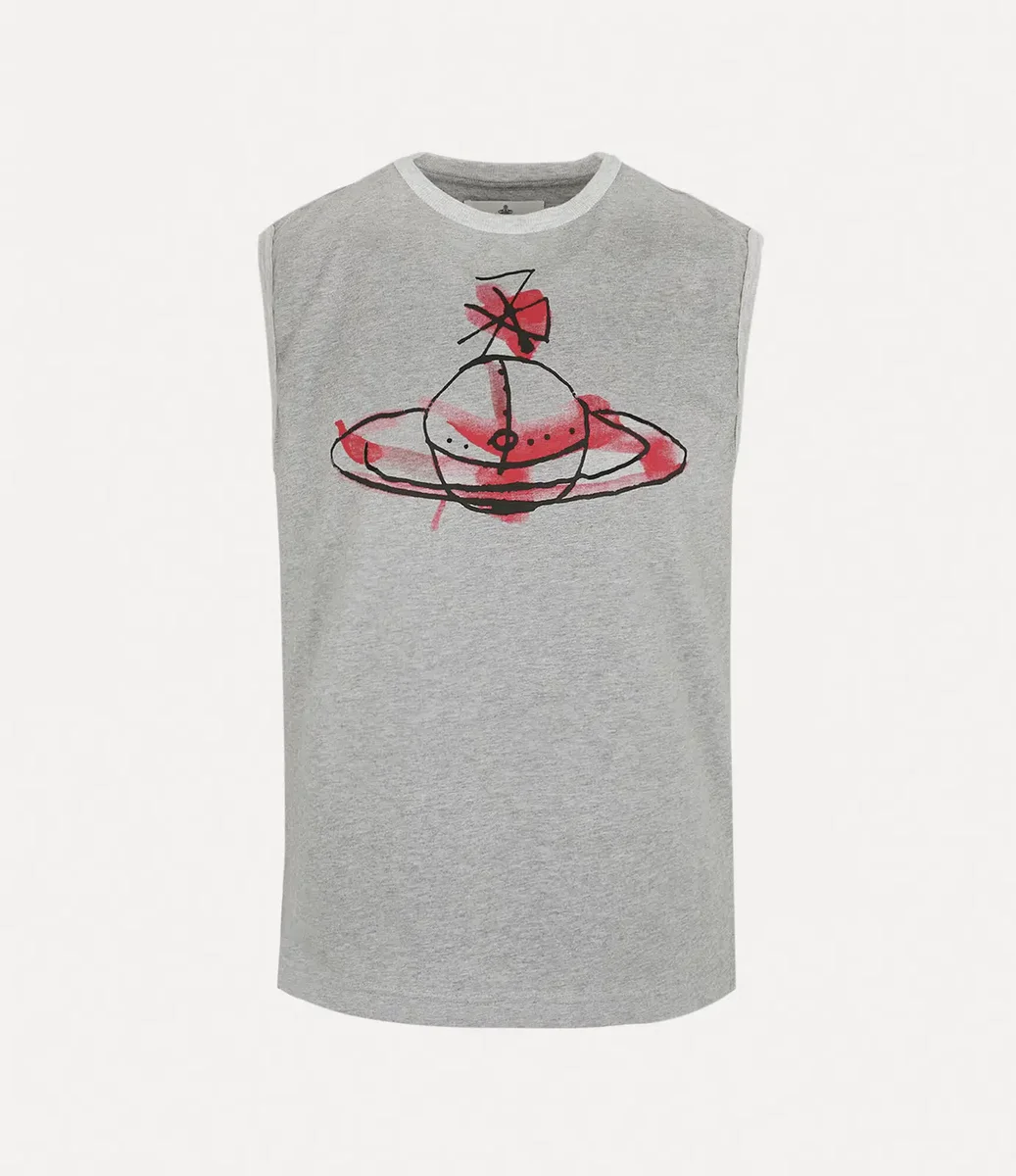 Unser Drawn Orb Muscle T-Shirt hat eine weiche Baumwollsilhouette und ist ärmellos mit geripptem Rundhalsausschnitt. Das Teil ziert das „Drawn Orb”-Motiv der Saison, das an handgemalte Pinselstriche erinnert – eine Anspielung auf die charakteristische DIY-Ästhetik des Hauses.