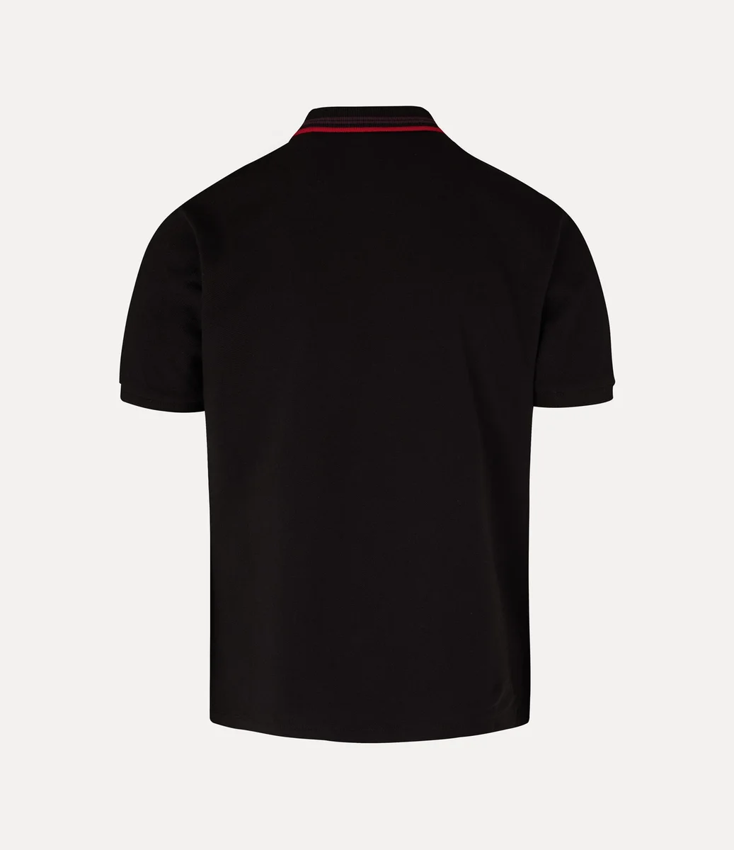 Unser klassisches Polohemd wurde in dieser Saison mit glänzenden Perlmuttknöpfen und gestreiften Details am Kragen neu interpretiert. Das aus weicher Baumwolle gefertigte Kleidungsstück hat auf der linken Brustseite ein gesticktes Kugelmotiv, das Tradition symbolisiert und von den himmlischen Ringen des Saturn umgeben ist, die für die Zukunft stehen.