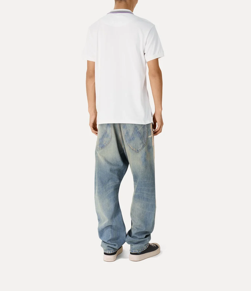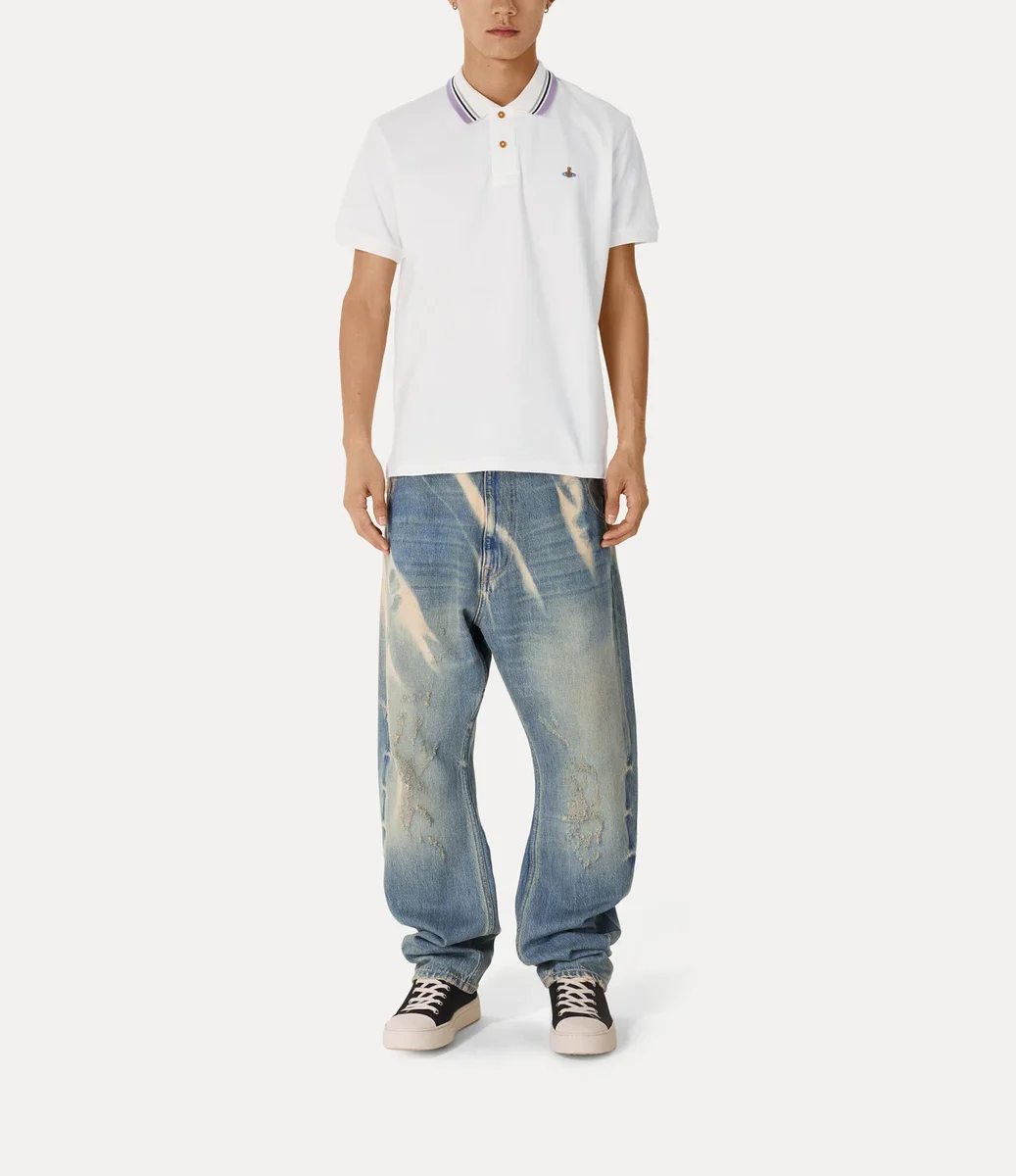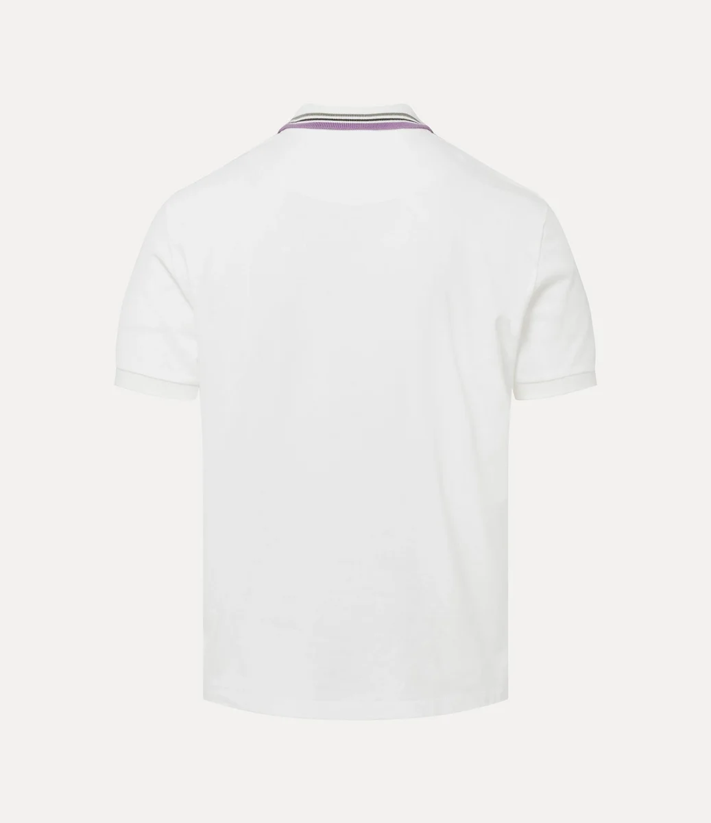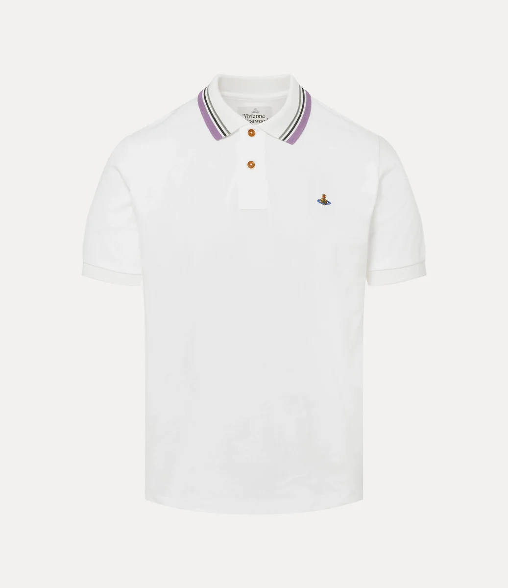 Unser klassisches Polohemd hat einen kontrastierenden Kragen mit mehrfarbigen Streifendetails. Das aus weicher Baumwolle gefertigte Kleidungsstück hat ein gesticktes Kugelmotiv auf der linken Brustseite, das Tradition symbolisiert, umgeben von den himmlischen Ringen des Saturn, die die Zukunft symbolisieren.